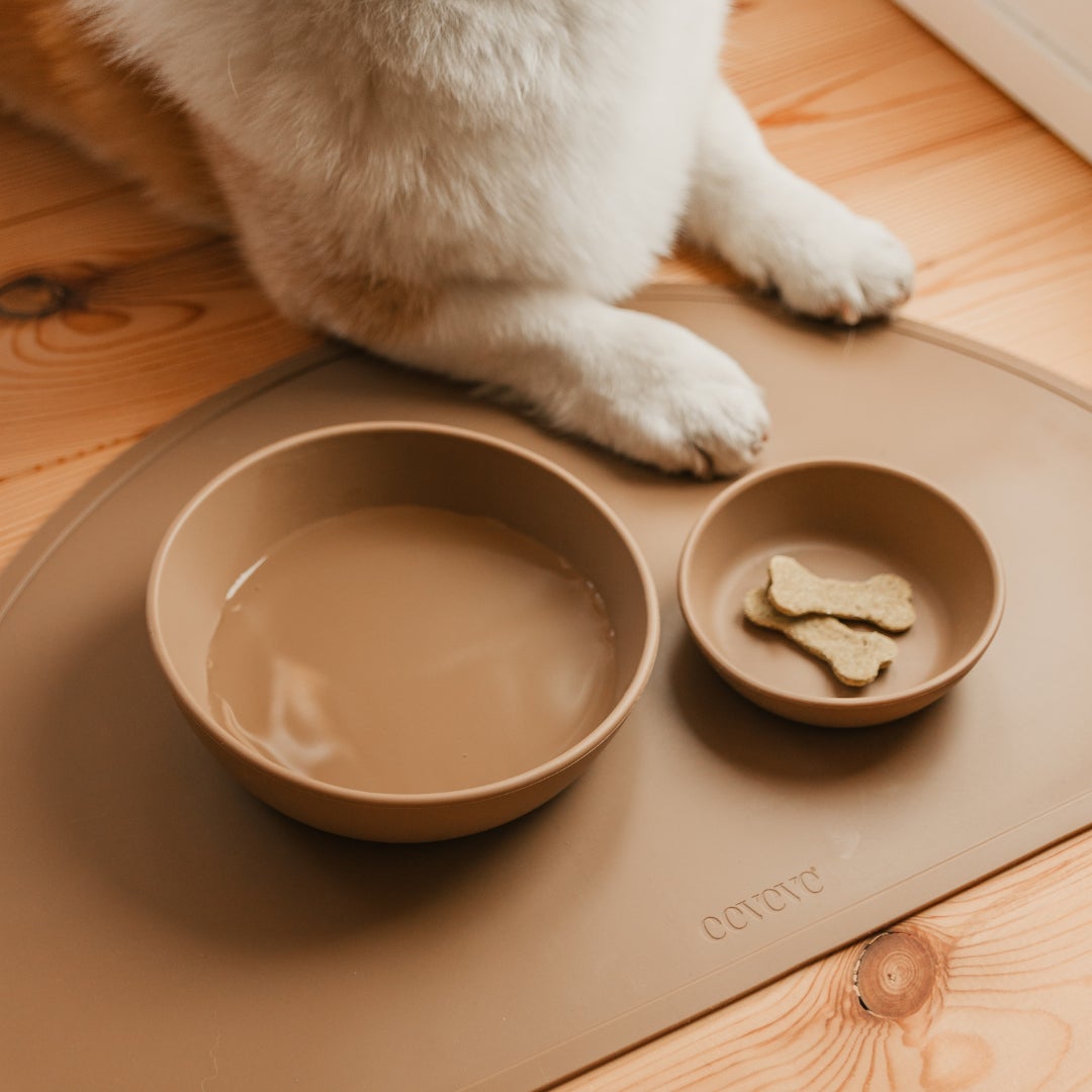 お手入れが簡単なシリコン製のランチョンマット。食べこぼしによる床やカーペットの汚れを防ぎ、マットについた汚れは水で洗い落とせます。シリコン製のため滑り止め効果も高いのでズレを防止することができます。ボウルLをふたつ並べても余裕のあるサイズです。マットをひくことで、おしゃれに演出できます。