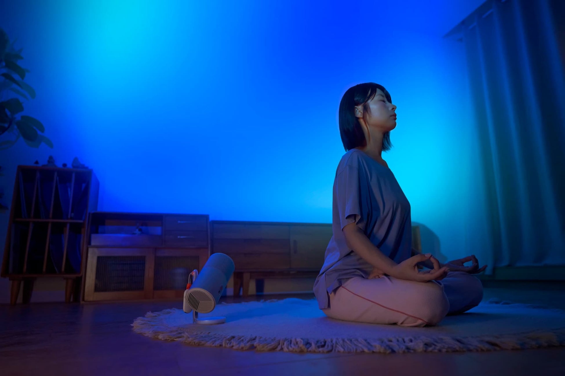 バッテリー内蔵の約1.3kgのコンパクト設計で、リビングや寝室はもちろんアウトドアなど幅広いシーンでご利用いただけます。大画面でのフルHD映像投影に加え、360°自在に回転するスタンドを内蔵。さらに、Aladdin OSを搭載し、主要動画配信サービスや20種類以上のオリジナルアプリをお楽しみいただけます。