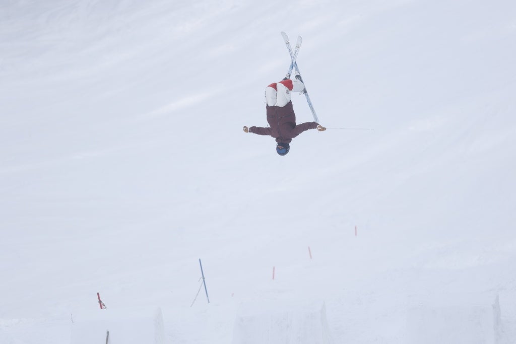 モーグル特有の連続ジャンプ・ターン・着地動作を多アングルで撮影しており、衝撃吸収動作の解析や関節挙動の推定に最適です。