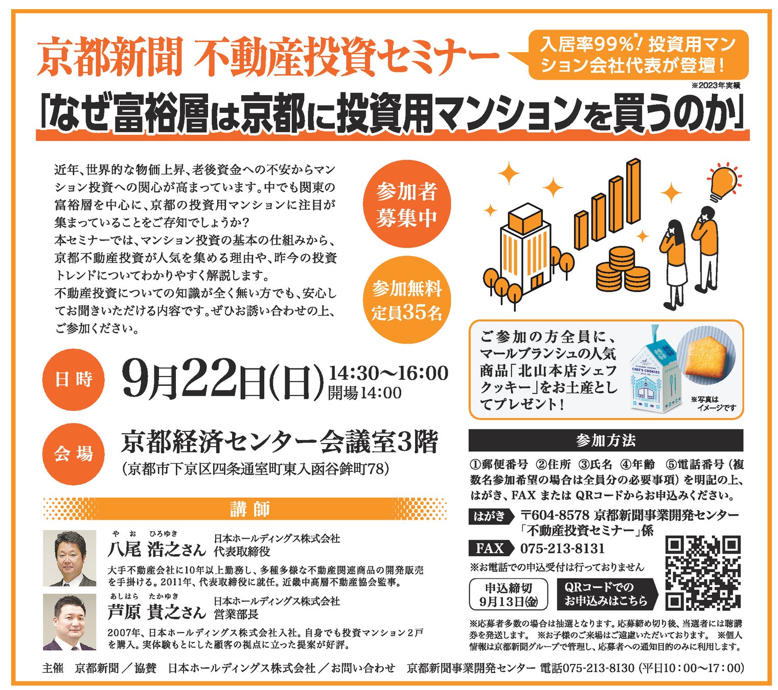 京都新聞 不動産投資セミナー「なぜ、富裕層は京都に投資用マンションを買うのか」開催!