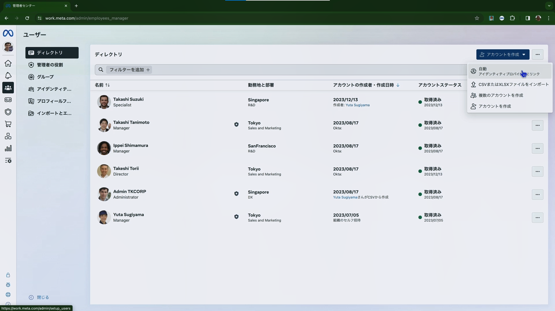 IDプロバイダー(例:okta/Azureなど)と連携ができ、プロビジョニングプロセスを自動化できます。