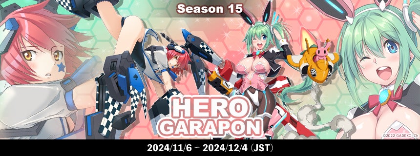 2024年11月6日(水)より、オリジナル武装を身にまとったコラボキャラクター「ガデ子CBst」(CV:佳穂成美)と「レニー・ロップAcro」が「ヒーローガラポン」に登場します!