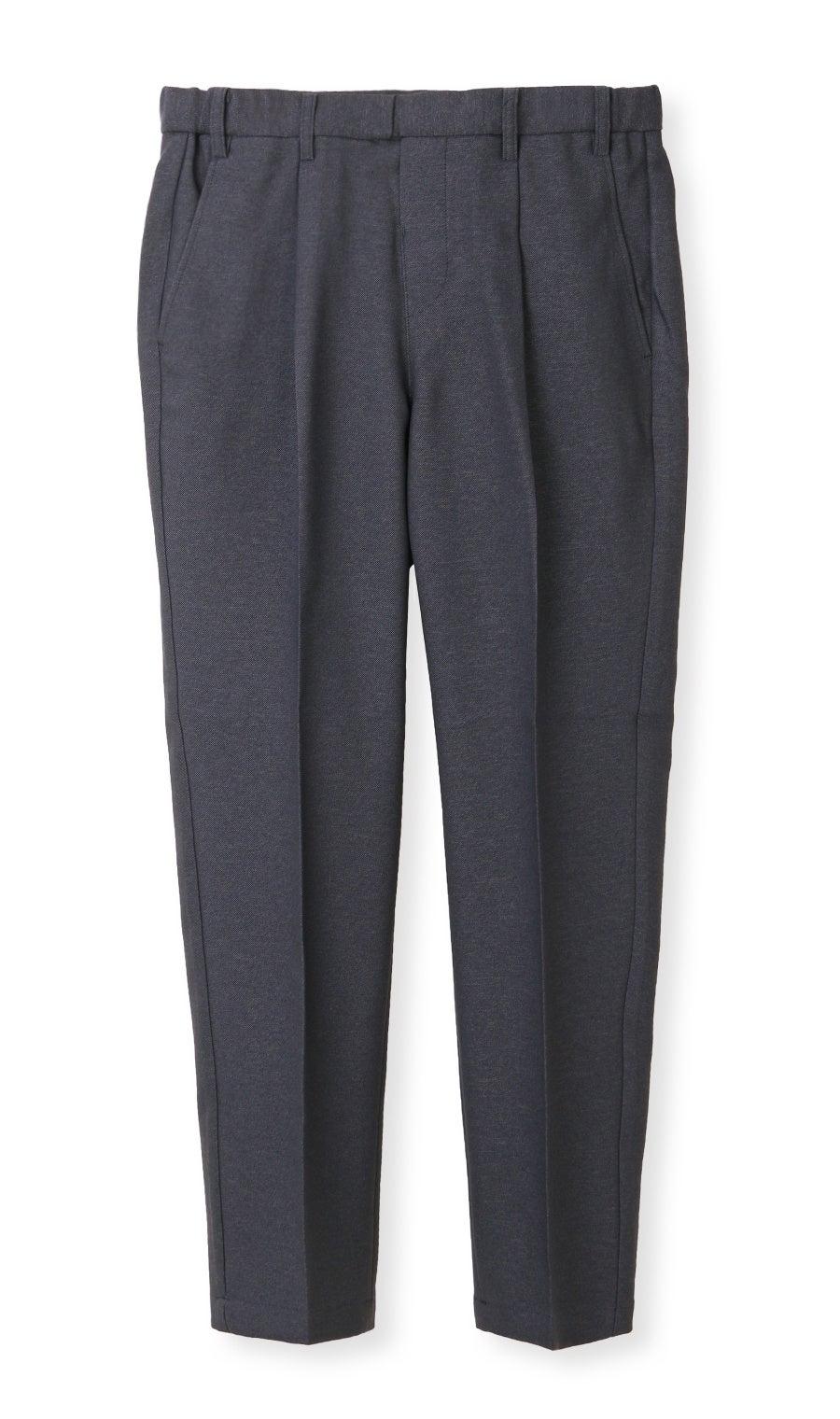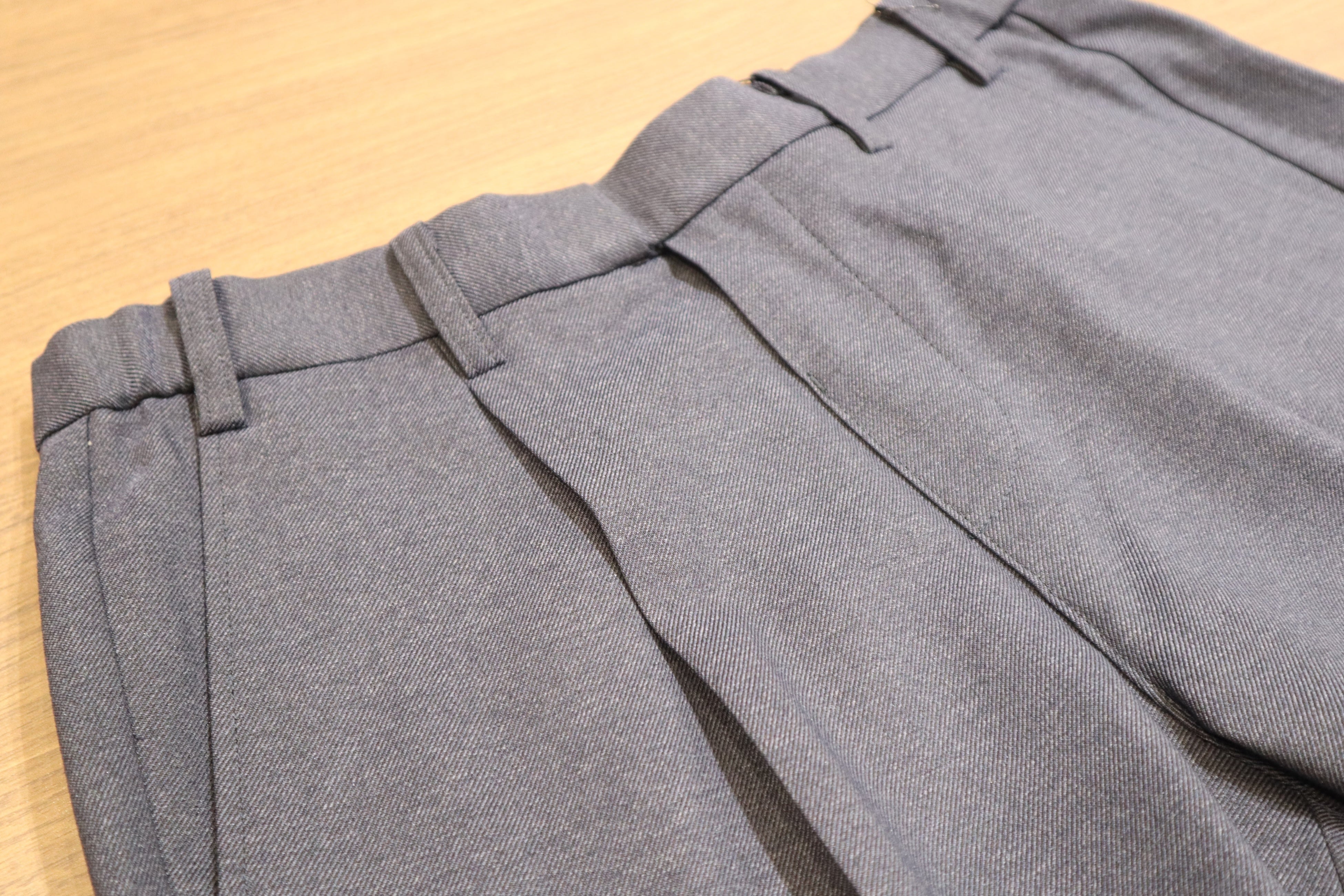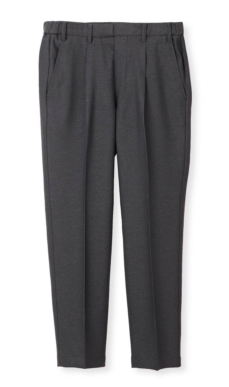 その他、ストレッチ性に優れた生地により、長時間椅子に座っての仕事や自転車などのアクティブな動きでもストレスを感じにくい仕様にしています。また、フロントホックやファスナーを省くことで、従来のスラックスと比べても軽量化が実現した他、自宅の洗濯機で丸洗いができるイージーケア性も兼ね備えた高機能スラックスです。デザインは、ネイビーとグレーの2色を用意し、ワンタック仕様にするなど全体的に少しゆとりを持たせています。