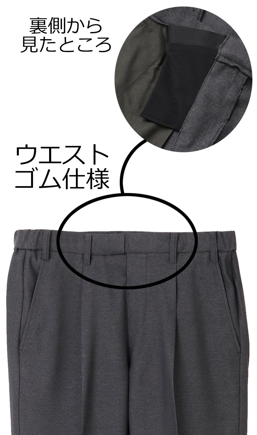 フロント裏部分のウエストゴム仕様