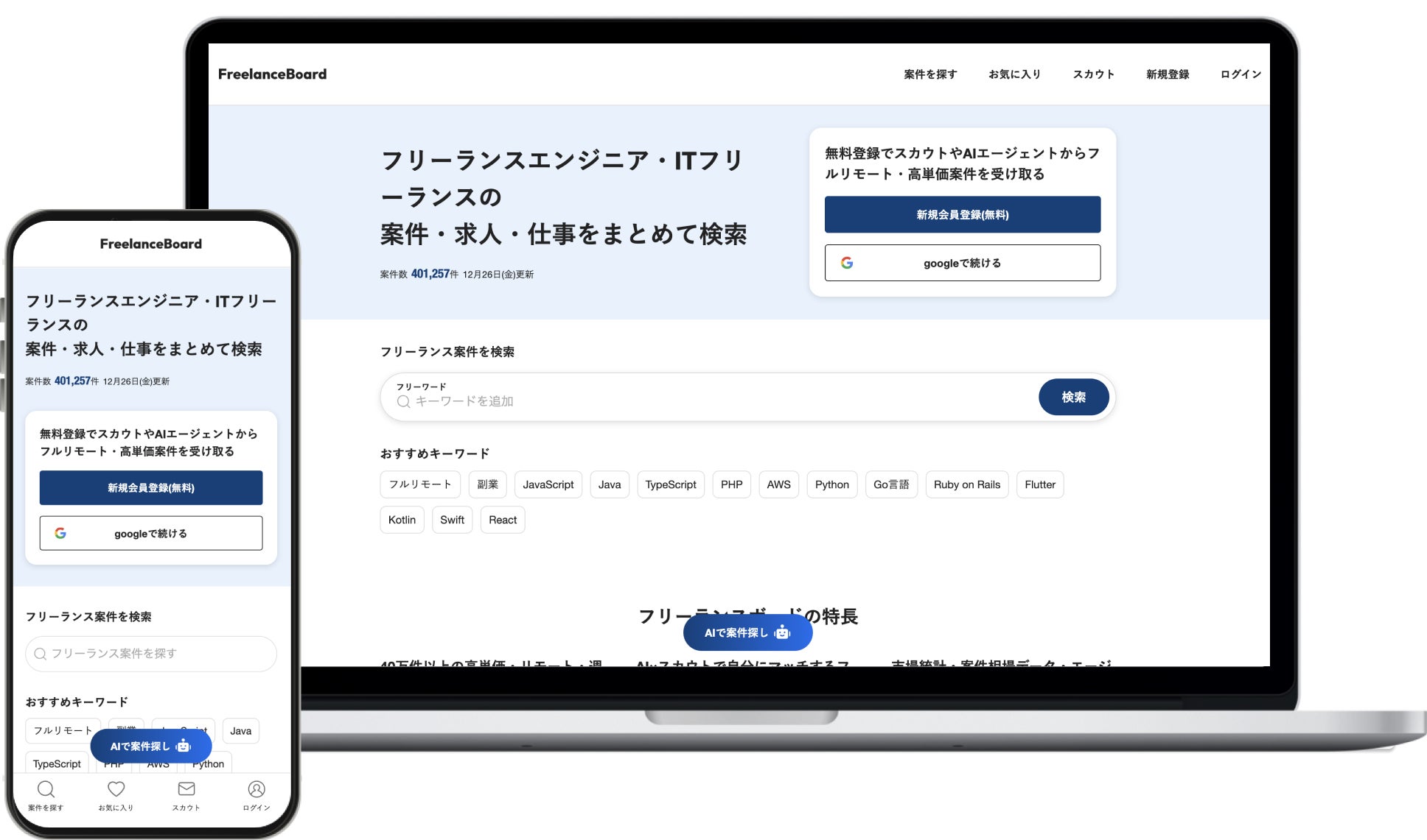 フリーランスエンジニア・ITフリーランスの案件検索サイト『フリーランスボード』6ヶ月で掲載案件数40万件突破!