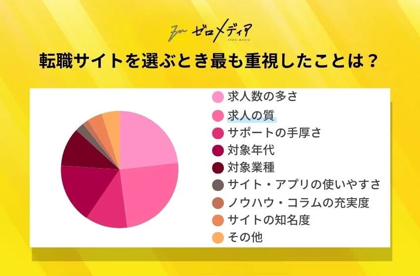 最も多かったのが「求人の質」、次いで「求人数の多さ」を重視する人が多いようです。