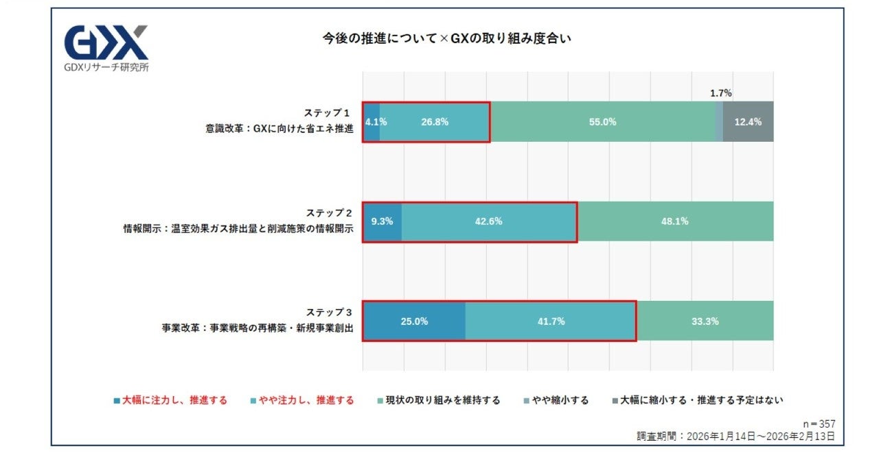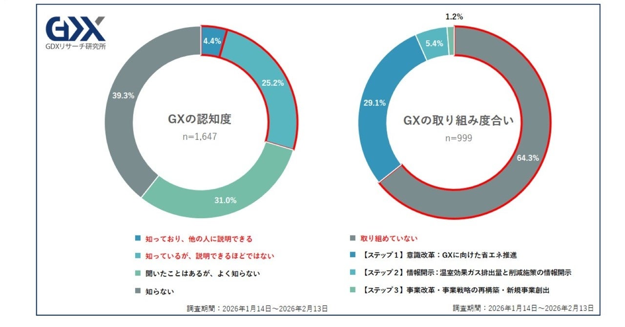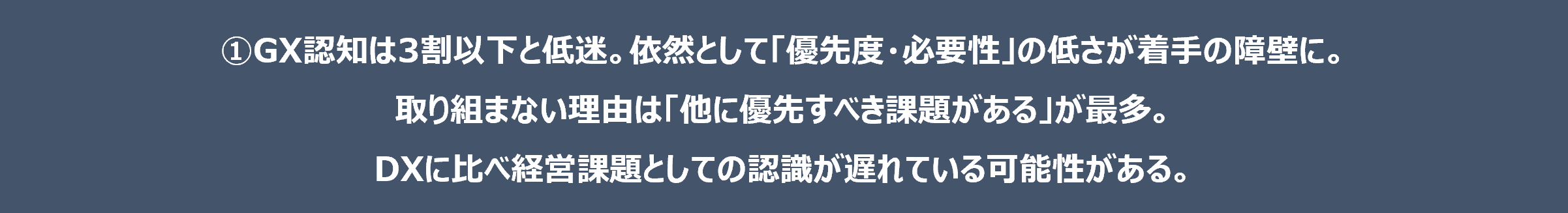 ①GX認知は3割以下と低迷。依然として「優先度・必要性」の低さが着手の障壁に。