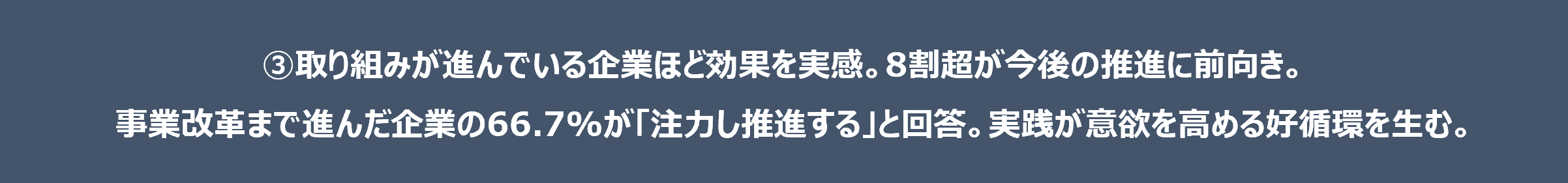③取り組みが進んでいる企業ほど効果を実感。8割超が今後の推進に前向き。