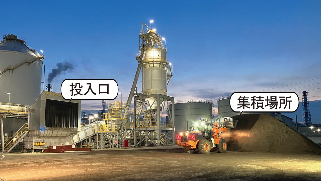 本実証実験ではバイオマス発電の燃料となるPKS(※2)をすくい込み、集積場所から燃料投入口まで運搬、投入するまでの作業を繰り返し、大林神栖バイオマス発電所の安定稼働に必要な135tを約2時間半で投入しました。