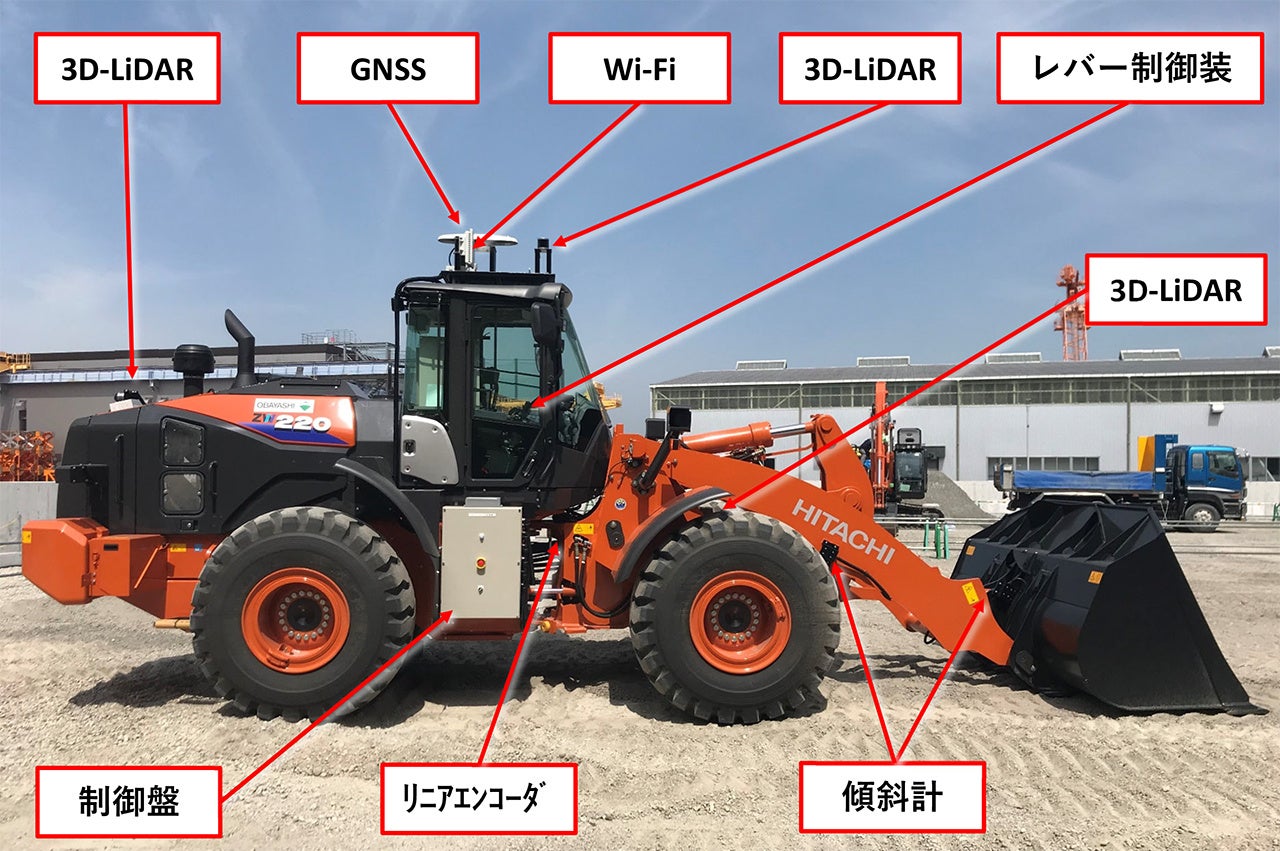 今般、それらの知見を活用してホイールローダ用の自動運転装置を開発し、同発電所にて実証実験を行いました。