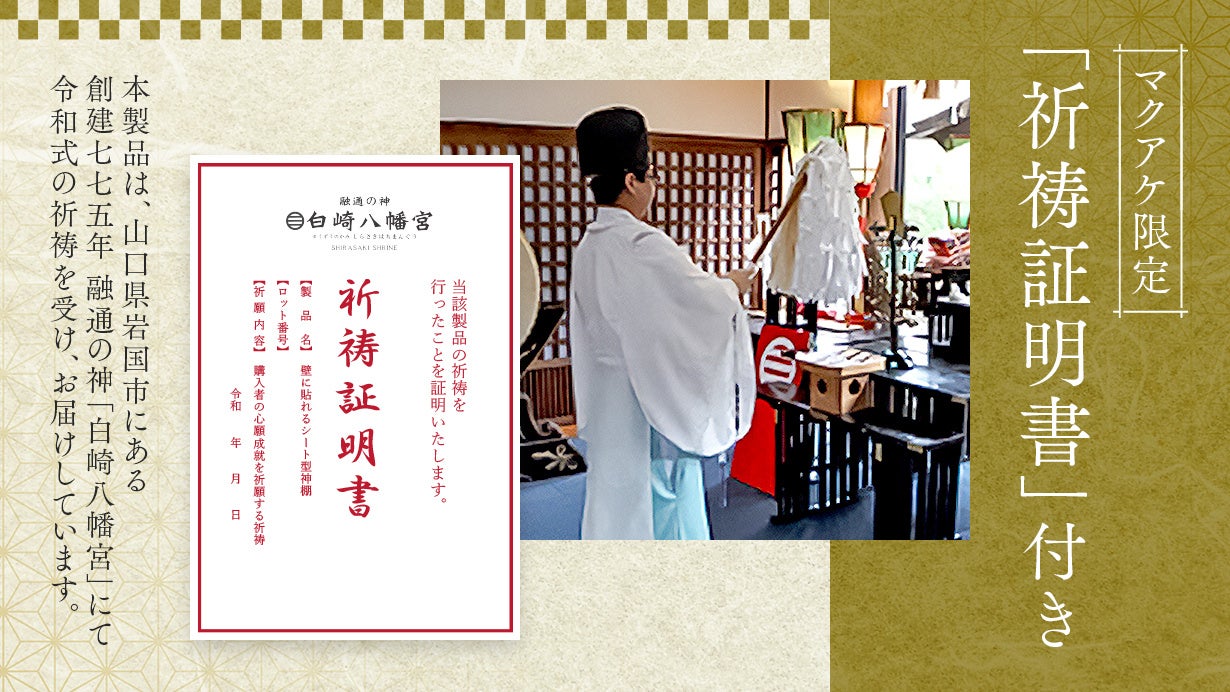本製品は、山口県岩国市にある創建七七五年「白崎八幡宮(しらさきはちまんぐう)」にて、令和式の祈祷を受けています(※1)。