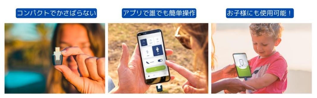 重さ5gという軽さで、専用アプリをダウンロードしたスマホに取り付ければ、バッテリーからの給電で温められ、適温になったら患部に4~10秒ほど押し当てるだけ。その手軽さと、薬品と違って弱い肌でもかぶれる心配がないことから、ドイツではヒット商品に。3年間で累計60万台を売り上げています。科学大国・ドイツで認められた新しいかゆみケアを、ぜひ皆様もお試しください。