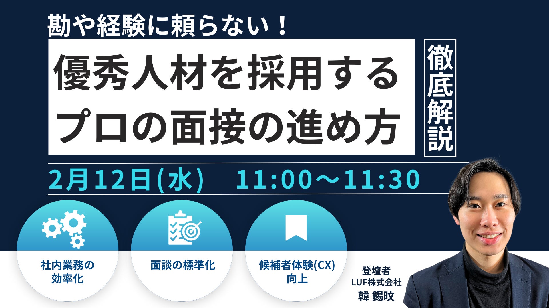 LUF株式会社(本社:東京都港区、代表取締役社長:堀尾 司)は、2025年2月12日(水)に『勘や経験に頼らない!優秀人材を採用するプロの面接の進め方を解説』を開催いたします。