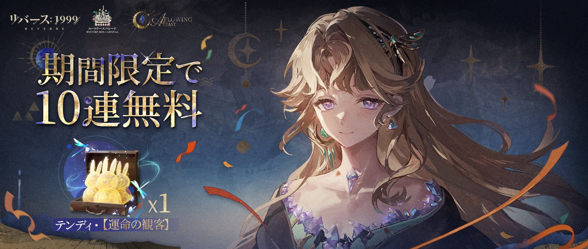 イベント期間中にゲームにログインすると「テンディ・【運命の観客】」を獲得できます。本アイテムを使用することで、パレード限定召喚「運命の観客」で10回連召喚を行えます。