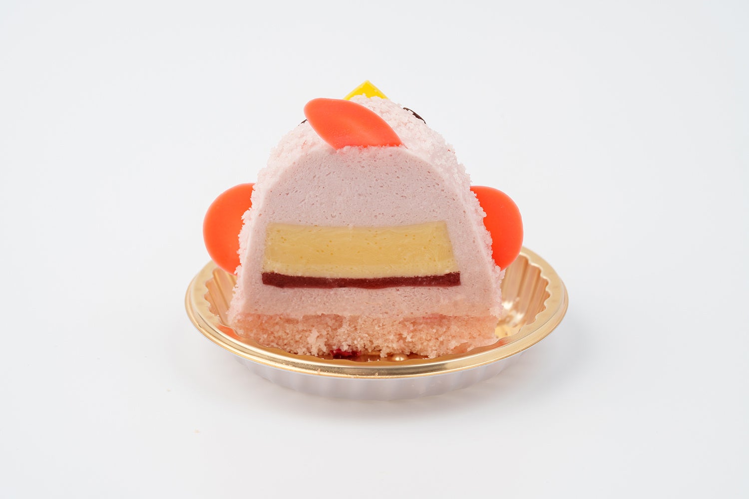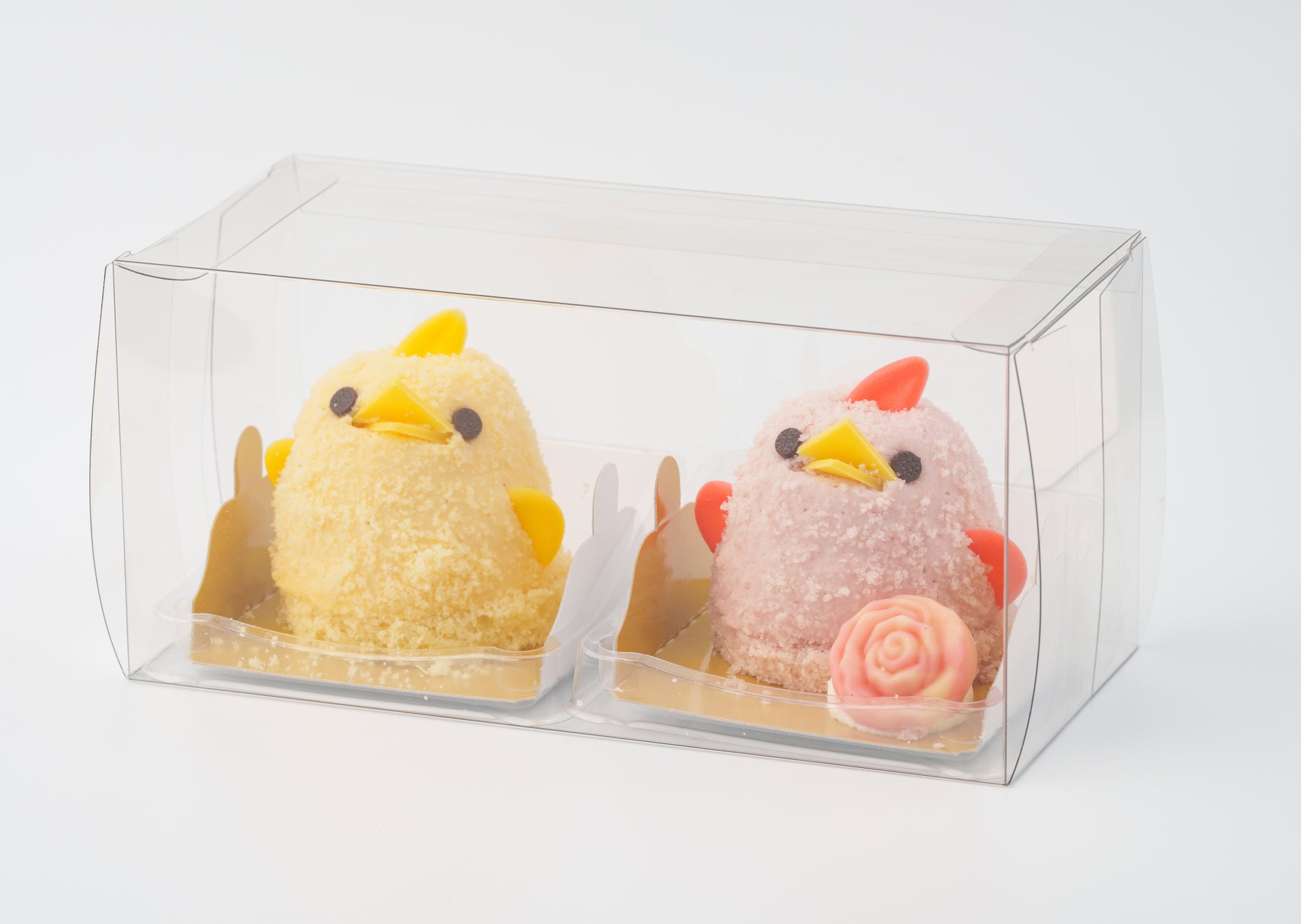 愛知県の地元食材「名古屋コーチン」の卵を使ったプリンを、バニラの香り豊かなババロアで包み込み、粉末状にしたスポンジをまとわせた、ふんわり「ひよこ」の形に飾り付けた生スイーツです。