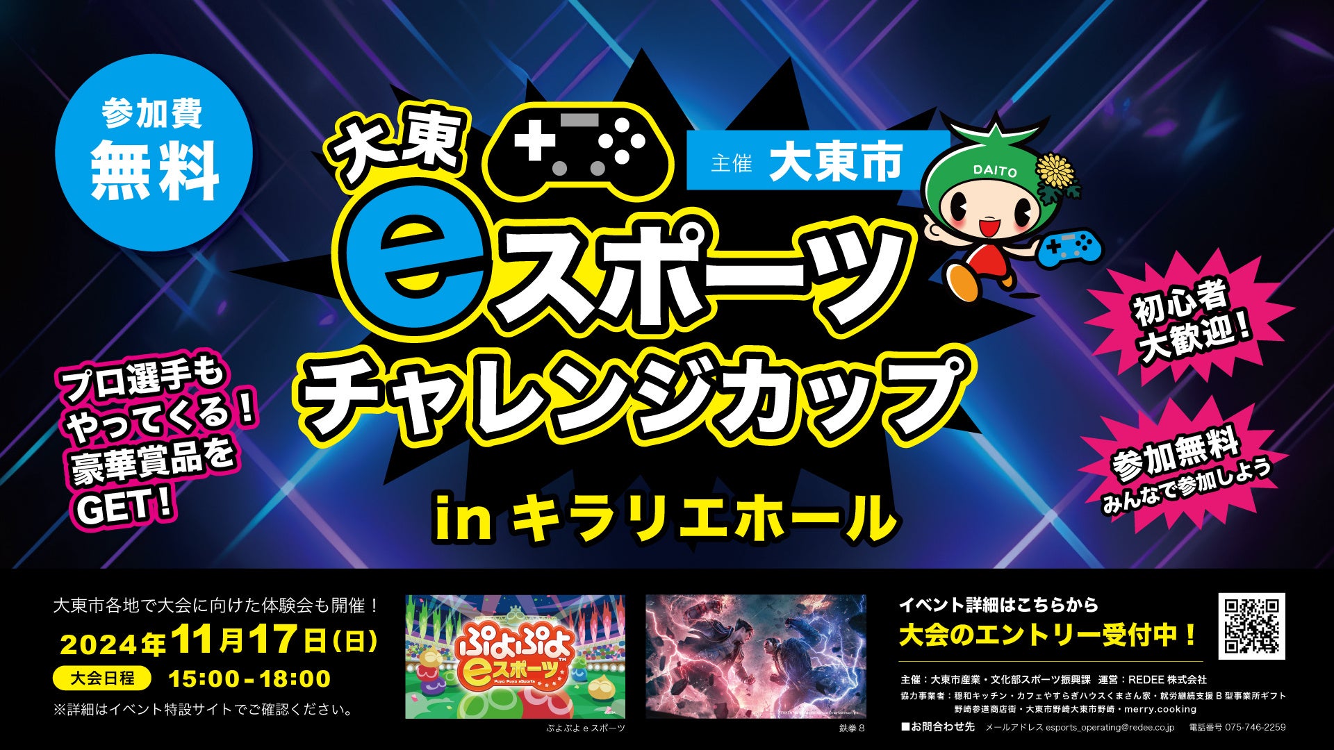 REDEE(レディー)株式会社(本社:京都市下京区、代表:代表取締役社長 密山 裕貴)は大阪府大東市が主催する「大東eスポーツチャレンジカップ」の企画・運営を行います。