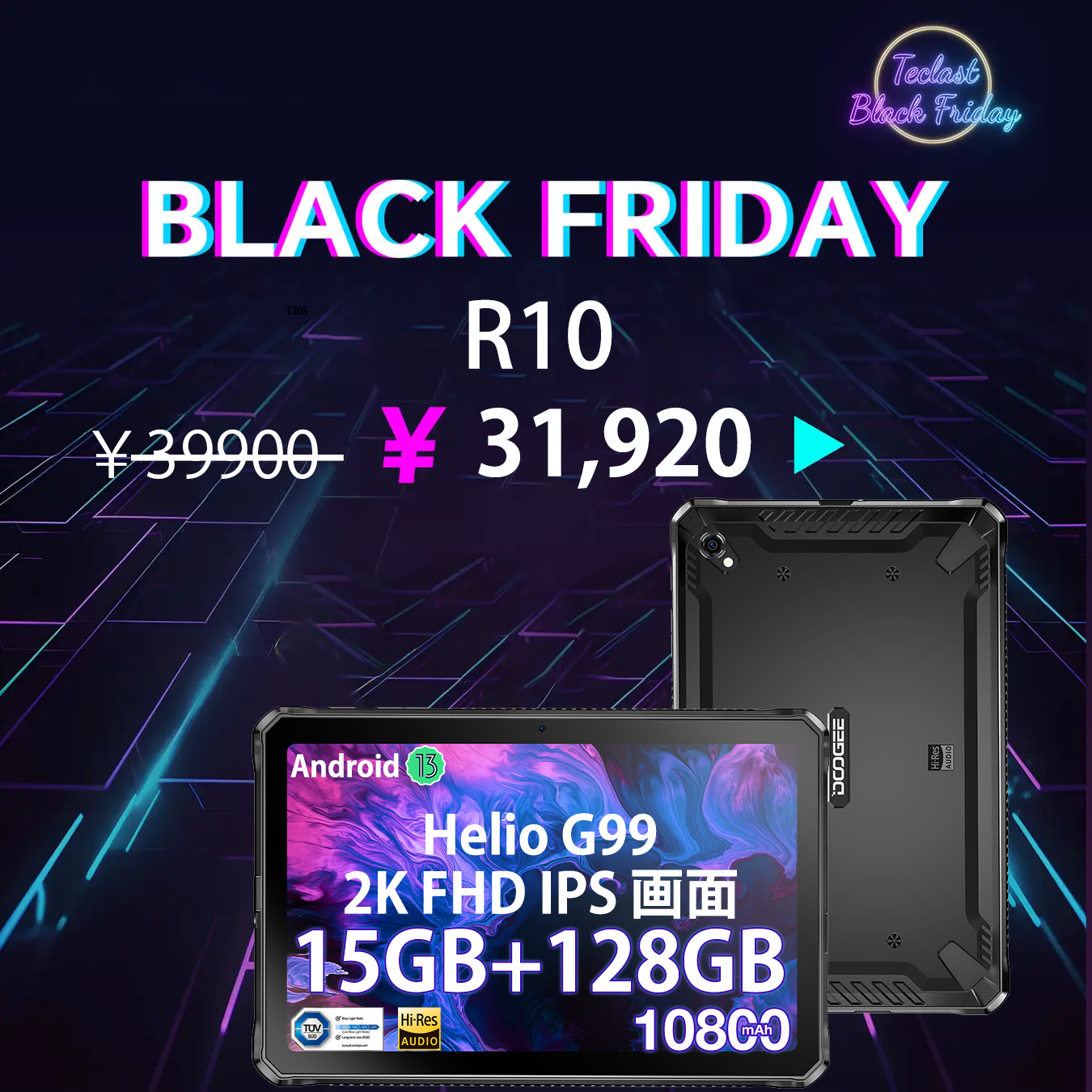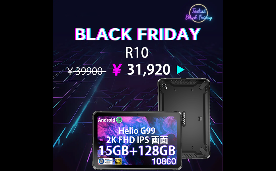 Amazon ブラックフライデーセール第4弾 Helilo G99大人気の防水タブレットが最大8100円OFFの大特価!