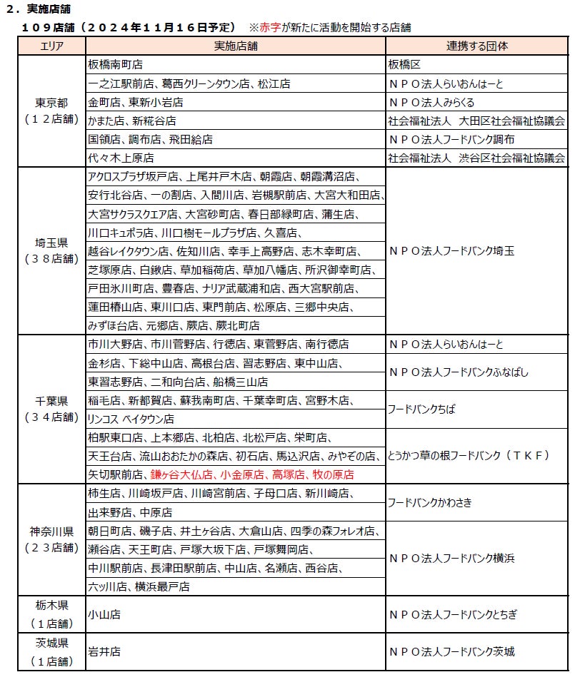 さらに、11月10日(日)からは高塚店、11月16日(土)からは牧の原店でも活動を開始し、当社での「フードドライブ」実施店舗は109店舗に拡大する予定です。
