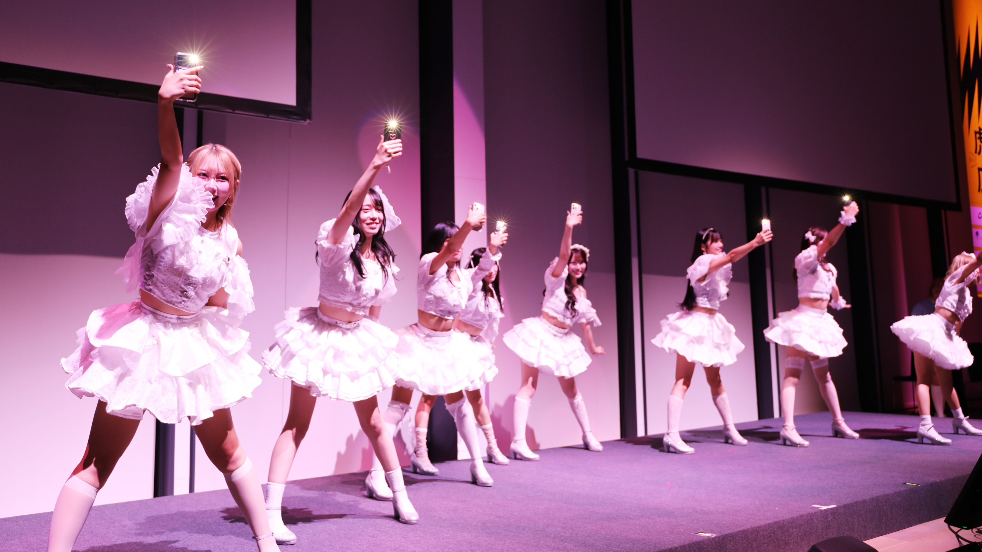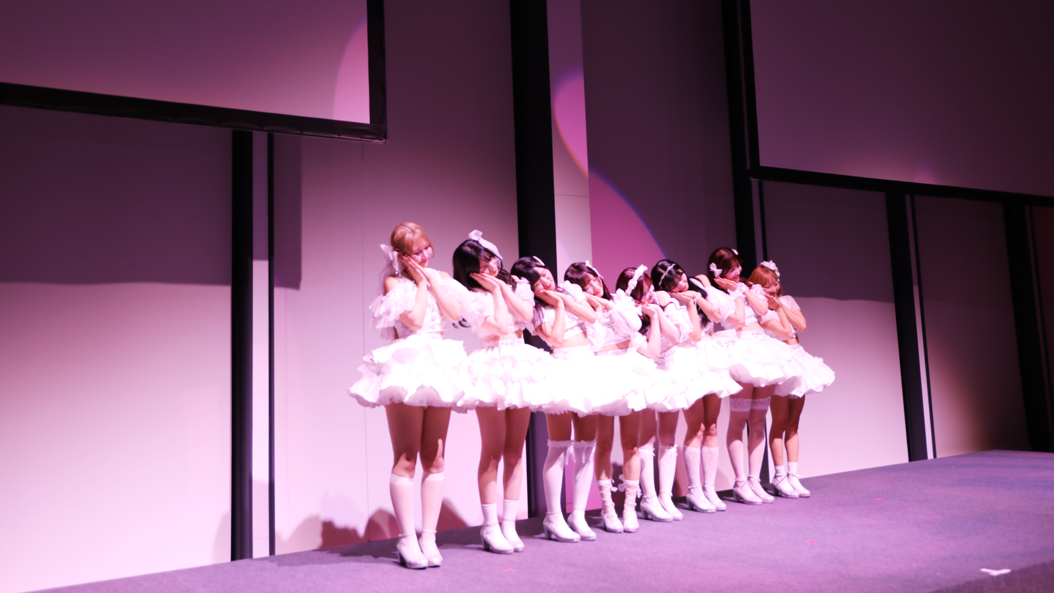 謎の吸血生物「チュパカブラ」にガチ恋したという「危険な恋」をコンセプトに、SAKURADOLLのメンバーの一人がチュパカブラの被り物を身に着けてユーモラスなダンスパフォーマンスを披露。可愛さとシュールさが融合した演出で、観客を笑いと驚きの渦に巻き込みました。
