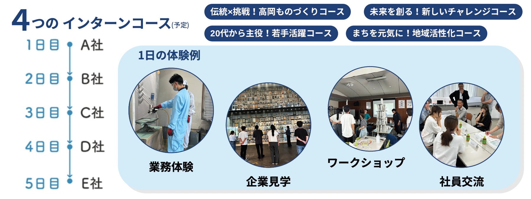 学生のみなさんには、高岡市内の5つの企業を5日間で訪問・体験できる、非常に実践的で充実した機会となります。