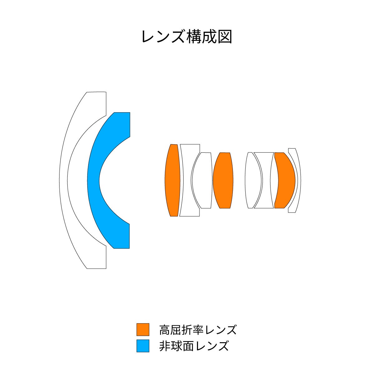 ・レンズ構成:8群10枚(高屈折率レンズ3枚、非球面レンズ1枚含む)