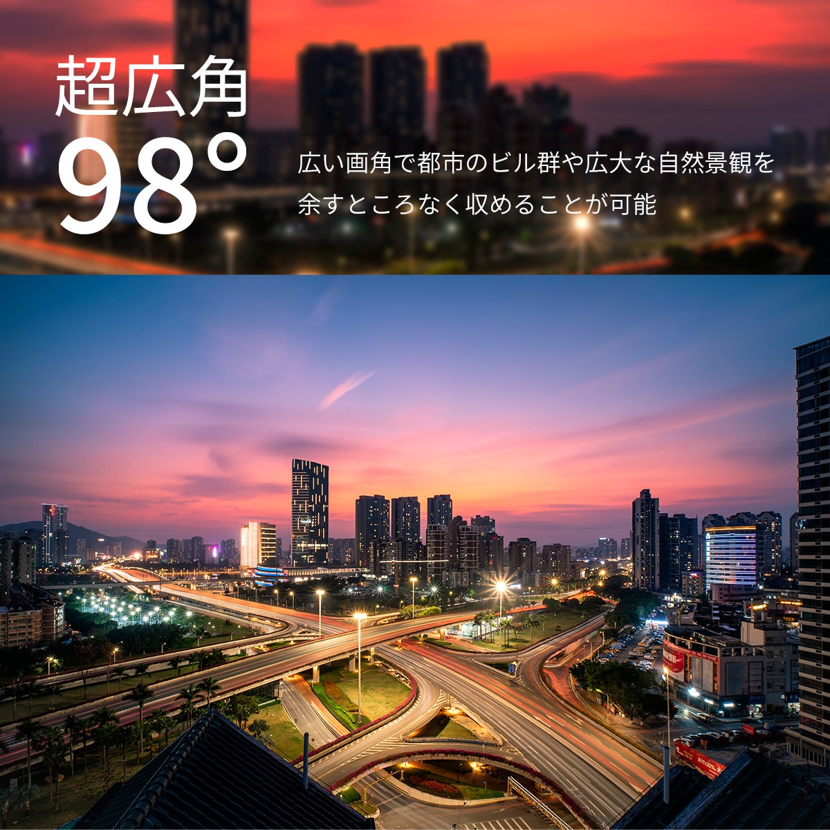 「SG-image 12mm F2.8」は、APS-Cセンサー対応の超広角単焦点レンズ。98°という広い画角で都市のビル群や広大な自然景観を余すところなく収めることが可能です。高屈折率レンズ3枚・非球面レンズ1枚を含む8群10枚の光学設計により、開放から画面隅々までクリアでコントラストの高い描写を実現。明るい開放F2.8は夜景や星景撮影でも被写体を鮮明に捉え、豊かな階調表現を可能にします。また、最短撮影距離0.2mにより被写体に寄った広角撮影も楽しめるため、建築物の迫力ある構図や背景を大きく取り込んだ風景表現など、多彩な撮影シーンに対応します。金属鏡筒を採用しながら約300g前後の軽量設計を実現しており、日常から旅先まで幅広い撮影シーンに対応します。操作面では、クリック感のある絞りリングと適度な重さを持つフォーカスリングを採用し、直感的かつ確実なマニュアル操作をサポートします。