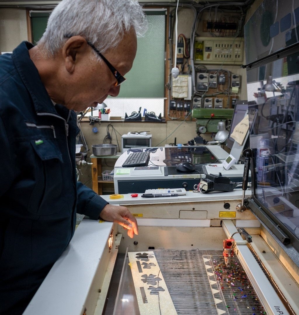 「創業当初は、製品加工は手動彫刻機を使用していましたが、その後コンピュータ制御によって加工や彫刻を行うCNC 工作機械(コンピュータ制御の工作機械)を導入。平成13年、最新のレーザー加工機を導入することで、さらに生産効率が高まり、デザイン性が広がり、格段に製品の幅が広がりました。足立ブランドに認定された翌年の平成20年には、このレーザー加工機を用いて作ったオブジェが、オーストリア商務部のテクノロジーを駆使したデザインコンテストで優勝することもできました」