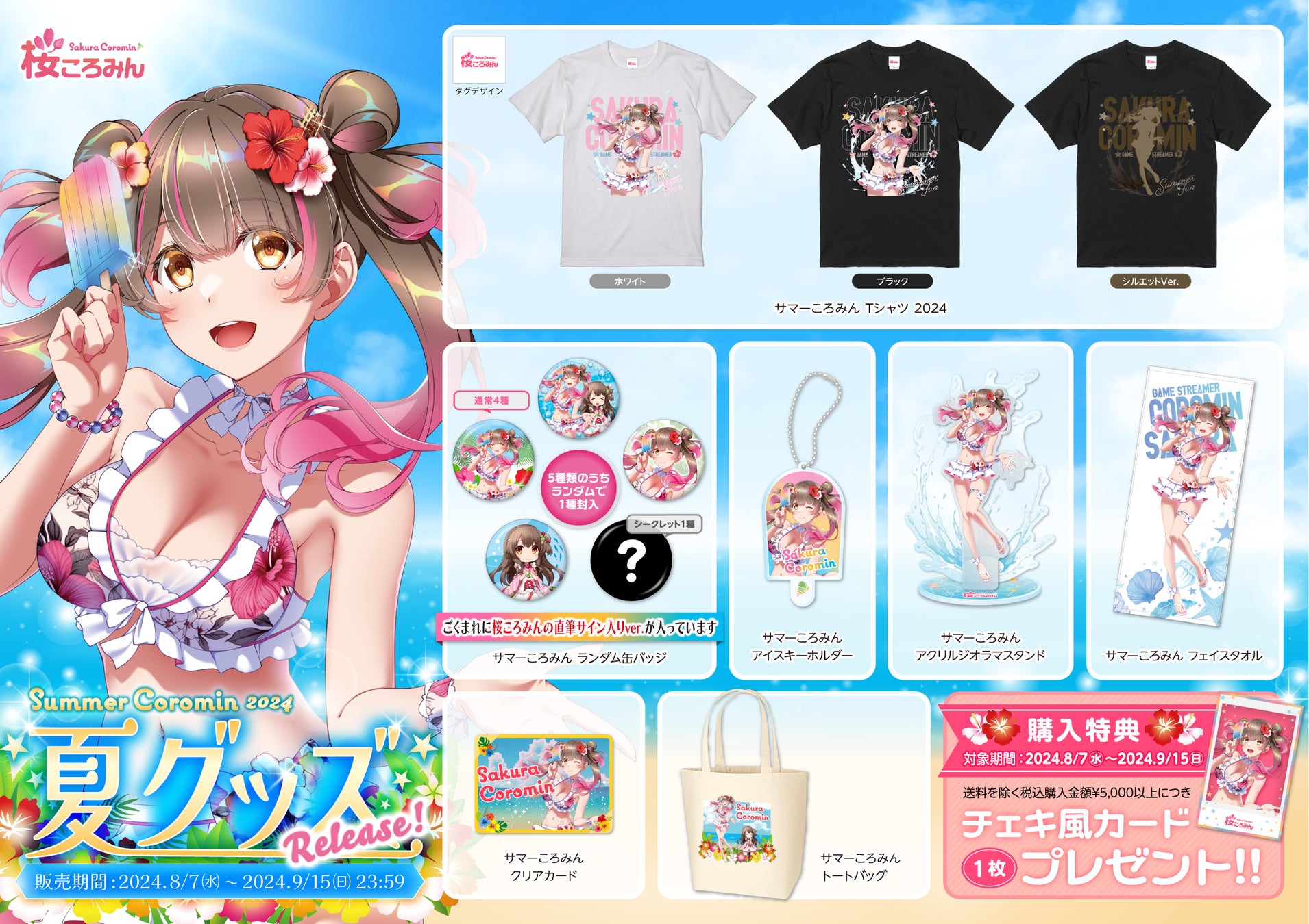 8月7日より公式オンラインストア『桜ころみんOFFICIAL STORE』にて、夏衣装イラストのオリジナルグッズを販売開始しました!