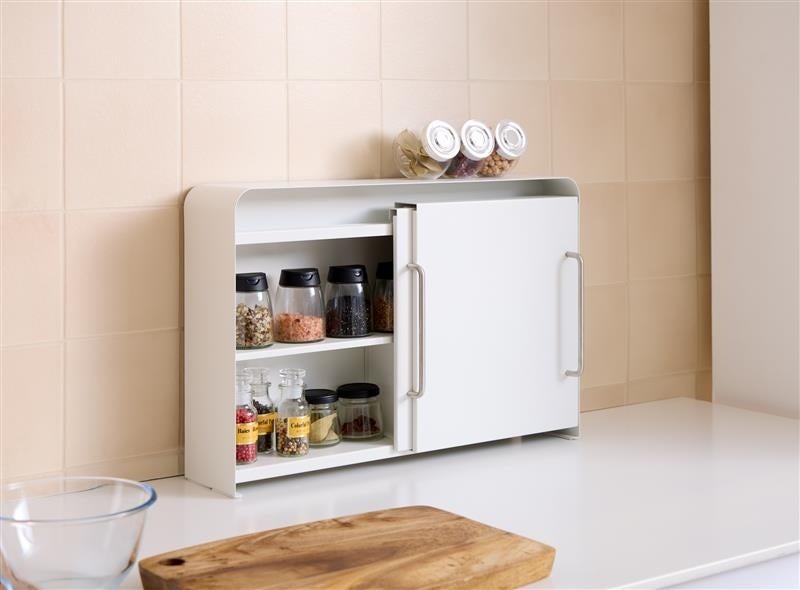 ●キッチン周りで散らかりがちな調味料や雑貨をひとまとめに隠してスッキリ収納できます。