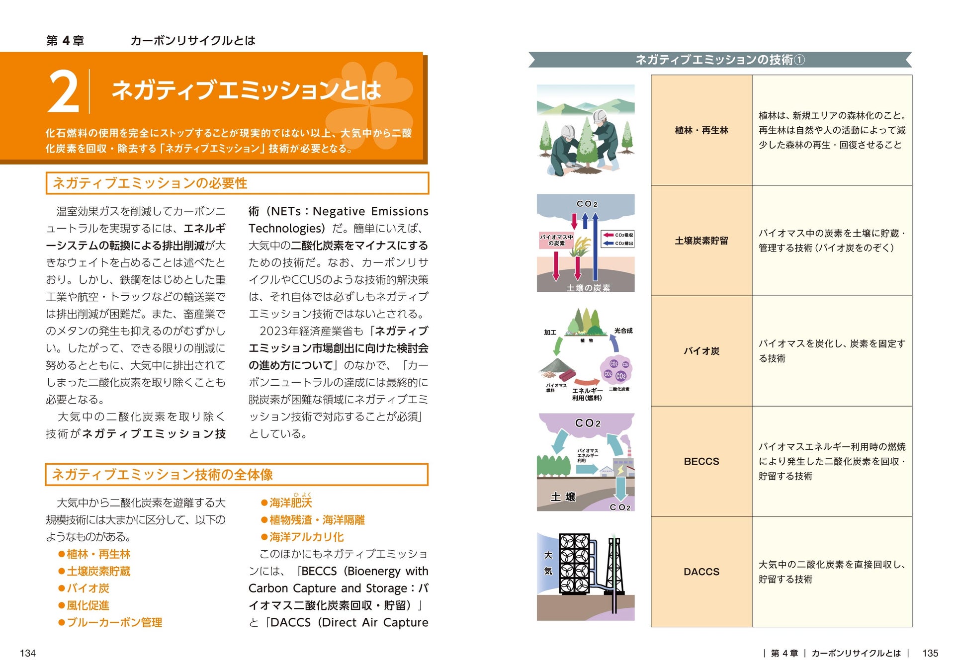 本書では、カーボンリサイクル、ネガティブエミッション、二酸化炭素の分離・回収・輸送・固定する技術、カーボンニュートラルをサポートする蓄電や畜エネルギー技術を解説します。各産業の取り組みとともに、SDGs、 ESG投資、政府による脱炭素化への補助金と支援について解説しています。