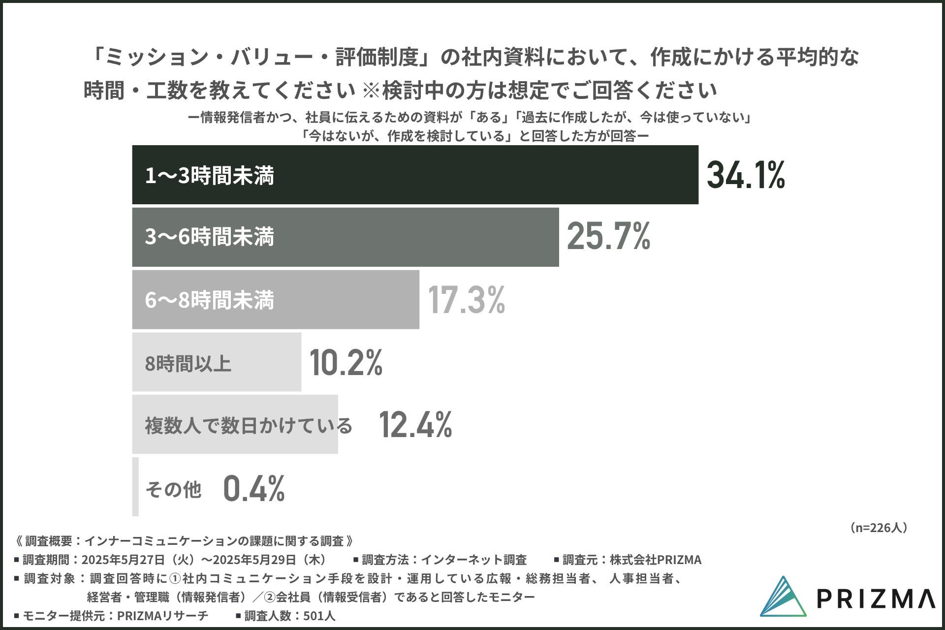 Q5. 「ミッション・バリュー・評価制度」の社内資料において、作成にかける平均的な時間・工数を教えてください(※検討中の方は想定でご回答ください)