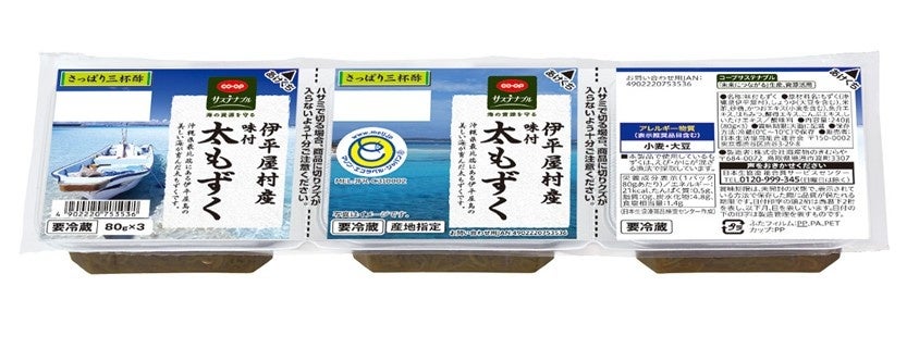 日本生活協同組合連合会(略称:日本生協連、代表理事会長:新井ちとせ)、コープデリ生活協同組合連合会(本部:埼玉県さいたま市、代表理事理事長:熊﨑伸、関東信越の6生協、以下コープデリ連合会)は、伊平屋村漁業協同組合の「オキナワモズク海面養殖」がMEL養殖認証*1を取得したことを受けて、発売中の「CO・OP 沖縄県伊平屋島産味付もずく米黒酢入り」をはじめとするもずく商品を、順次MELロゴマーク付きパッケージに切り替え、コープサステナブル*2“海の資源を守る”の商品として販売します。