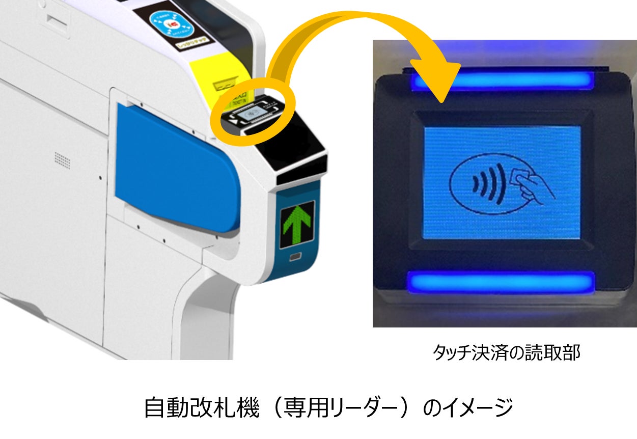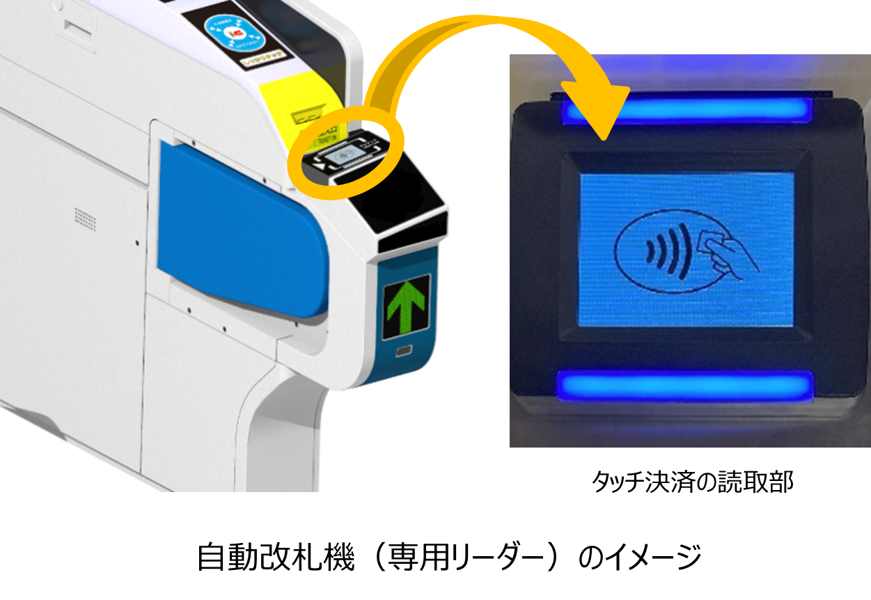 クレジットカードやデビットカード等のタッチ決済による乗車では、ICカードへのチャージやきっぷの購入が不要となり、お客様がお持ちのタッチ決済対応のカード(クレジット・デビット・プリペイド)や同カードが設定されたスマートフォン等を、自動改札機に新たに設置する専用リーダーにタッチすることで改札を通過できます。