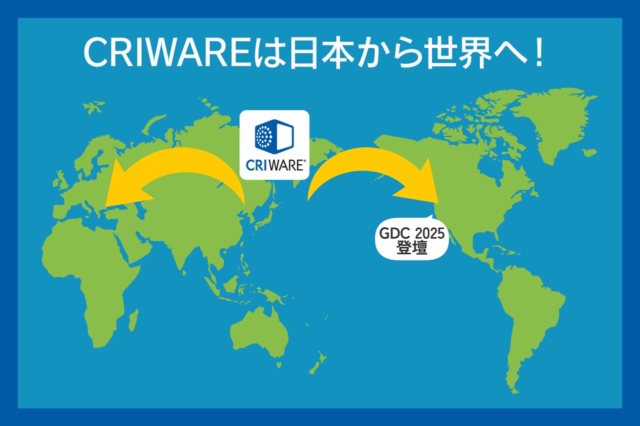 株式会社CRI・ミドルウェア(本社:東京都渋谷区、代表取締役社長:押見 正雄、以下 「CRI」)は、ミドルウェア製品群「CRIWARE」の全世界展開に向け、各国販売代理店との契約締結を推進いたします。またゲーム制作に関する知見を認められたことにより、2025年3月に米国サンフランシスコにて開催されるゲーム開発者向けの国際カンファレンス「Game Developers Conference(GDC)」に登壇いたします。