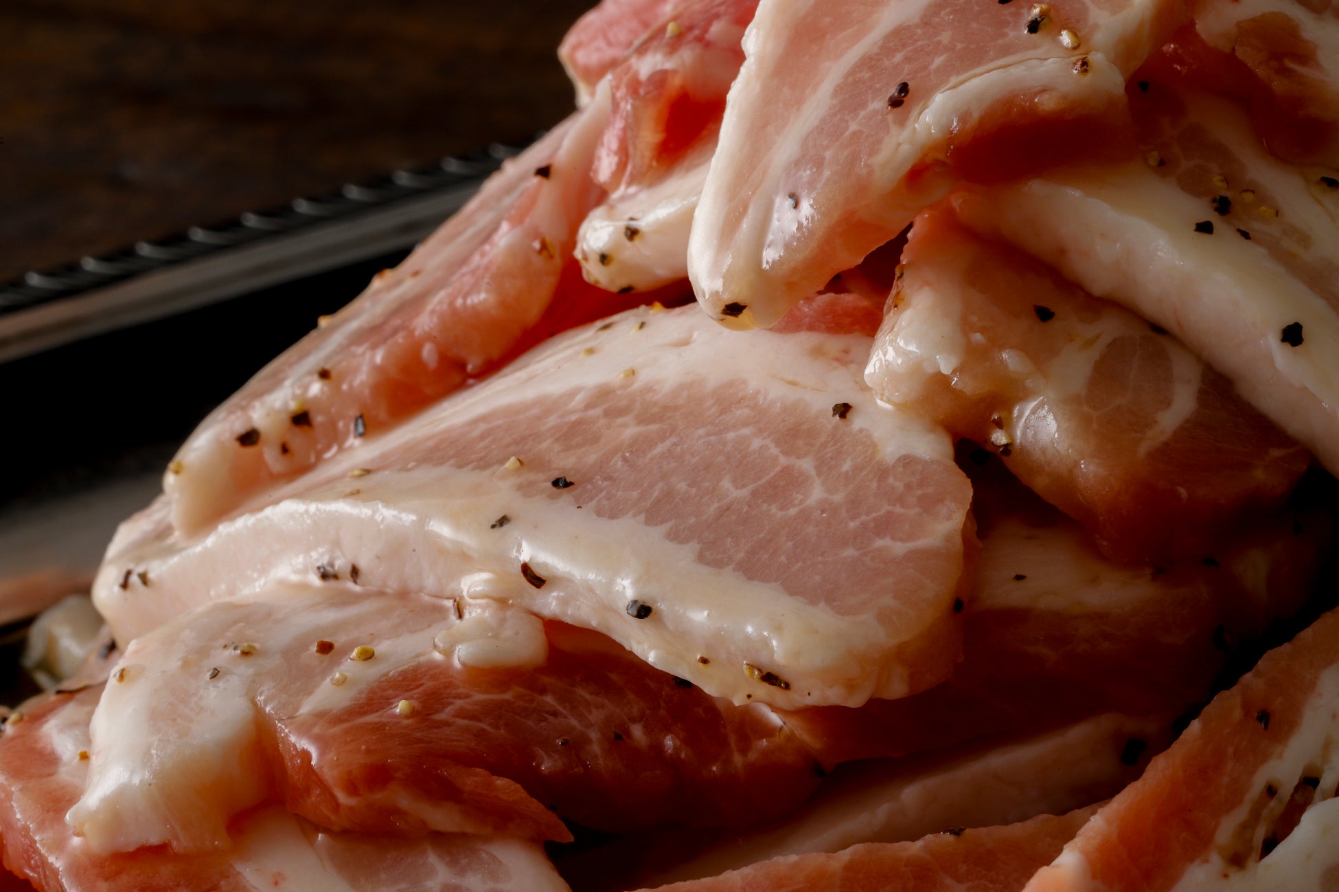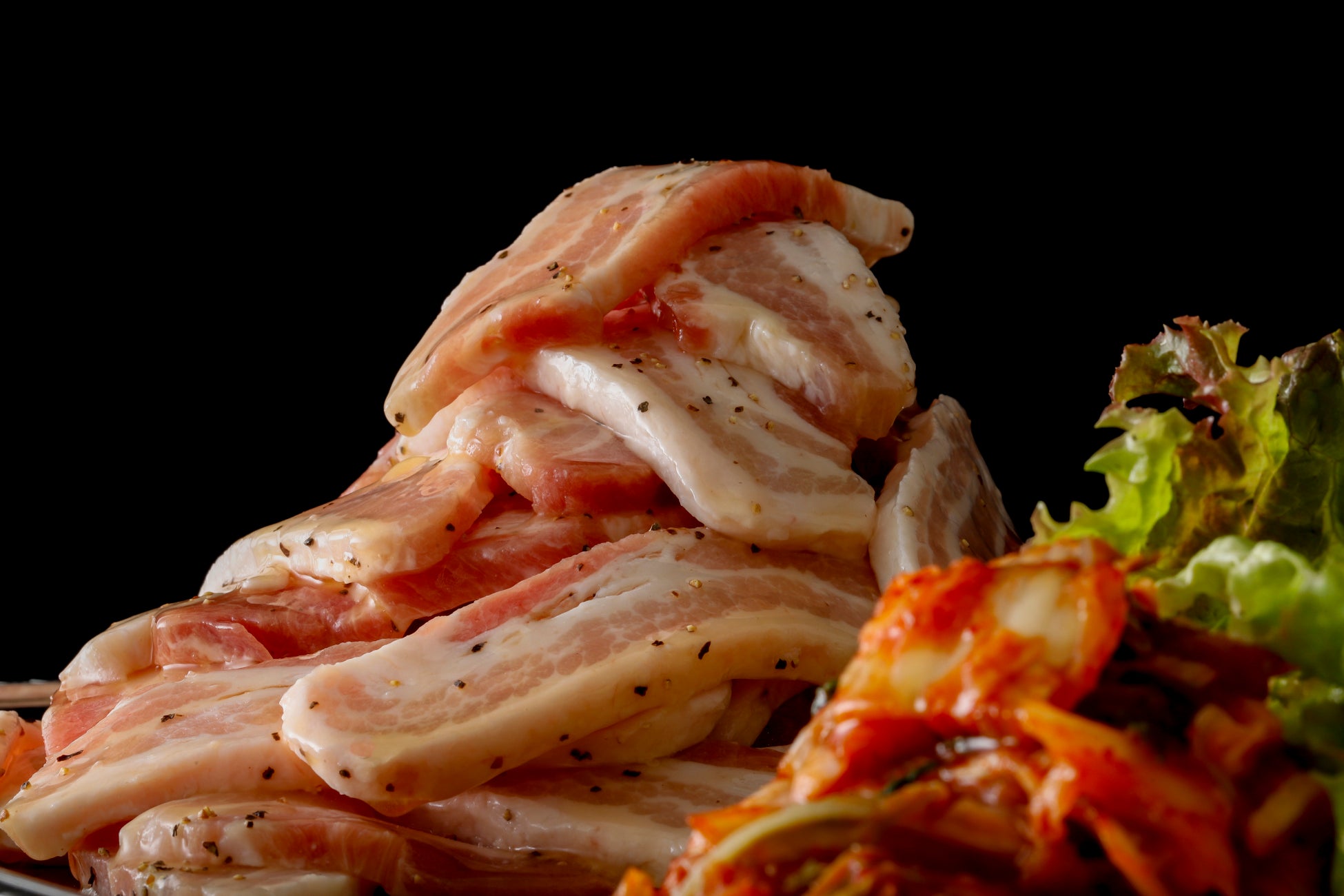 厚切りでジューシー!香ばしく焼いて楽しむ脂の旨み。キムチ、辛みそ、お野菜と一緒にぜひどうぞ。