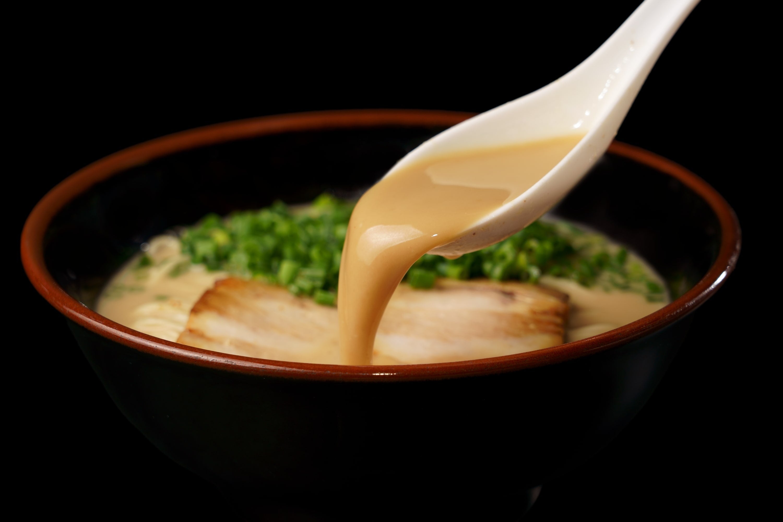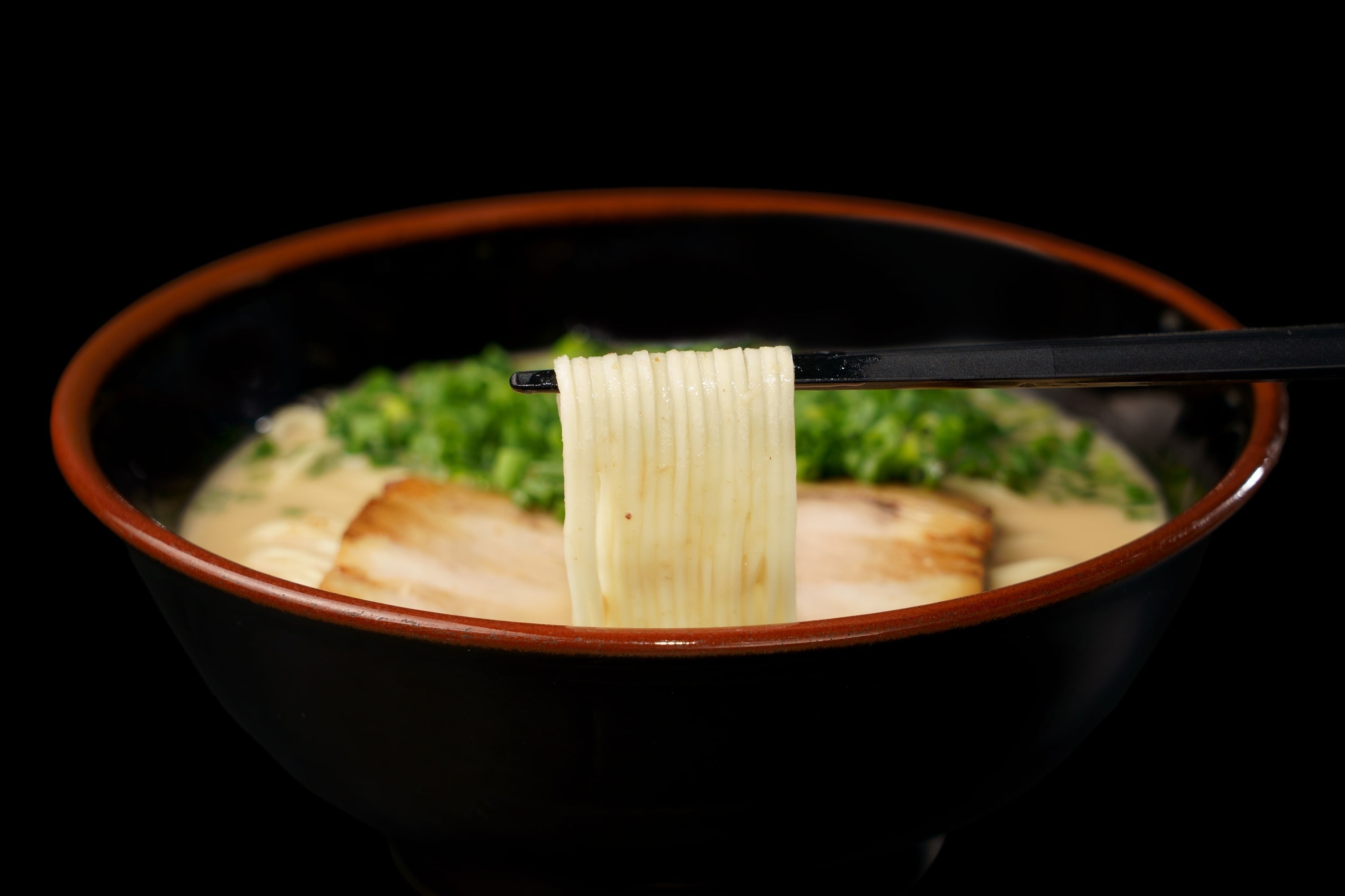 福岡県産の2種類の豚骨を軟水で9時間もの間じっくり炊き上げたスープは、豚骨特有の臭みやクセを全く感じさせず、化学調味料不使用ながら、強烈な旨味とパンチが押し寄せるまさに“A級”な味わいです。そんなスープに合わせるのは、力強い弾力と歯切れ良さが特徴の自家製細麺で、噛むほどに小麦の風味が口の中で弾けます。濃厚な豚骨スープと相性抜群の柔らかなチャーシューのとろりとした食感もお楽しみください。