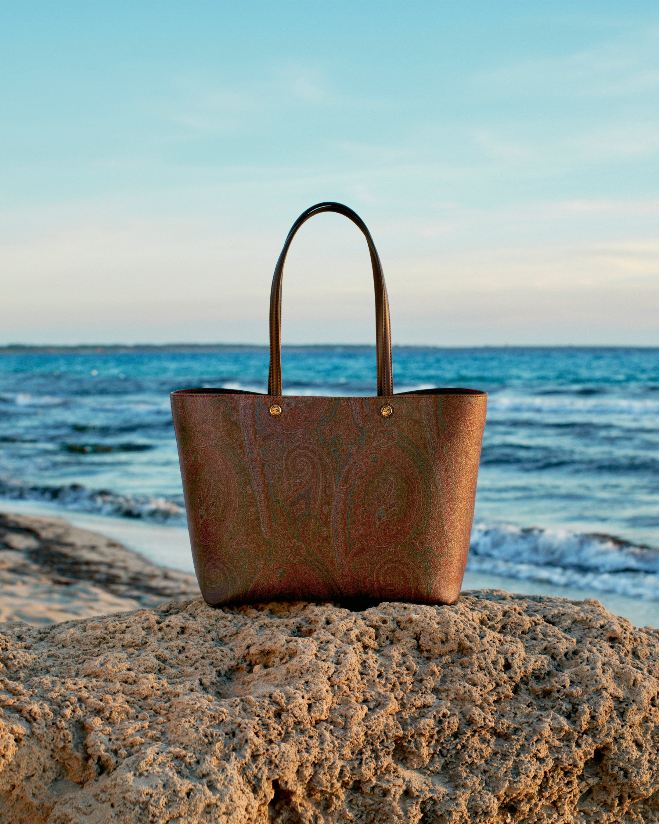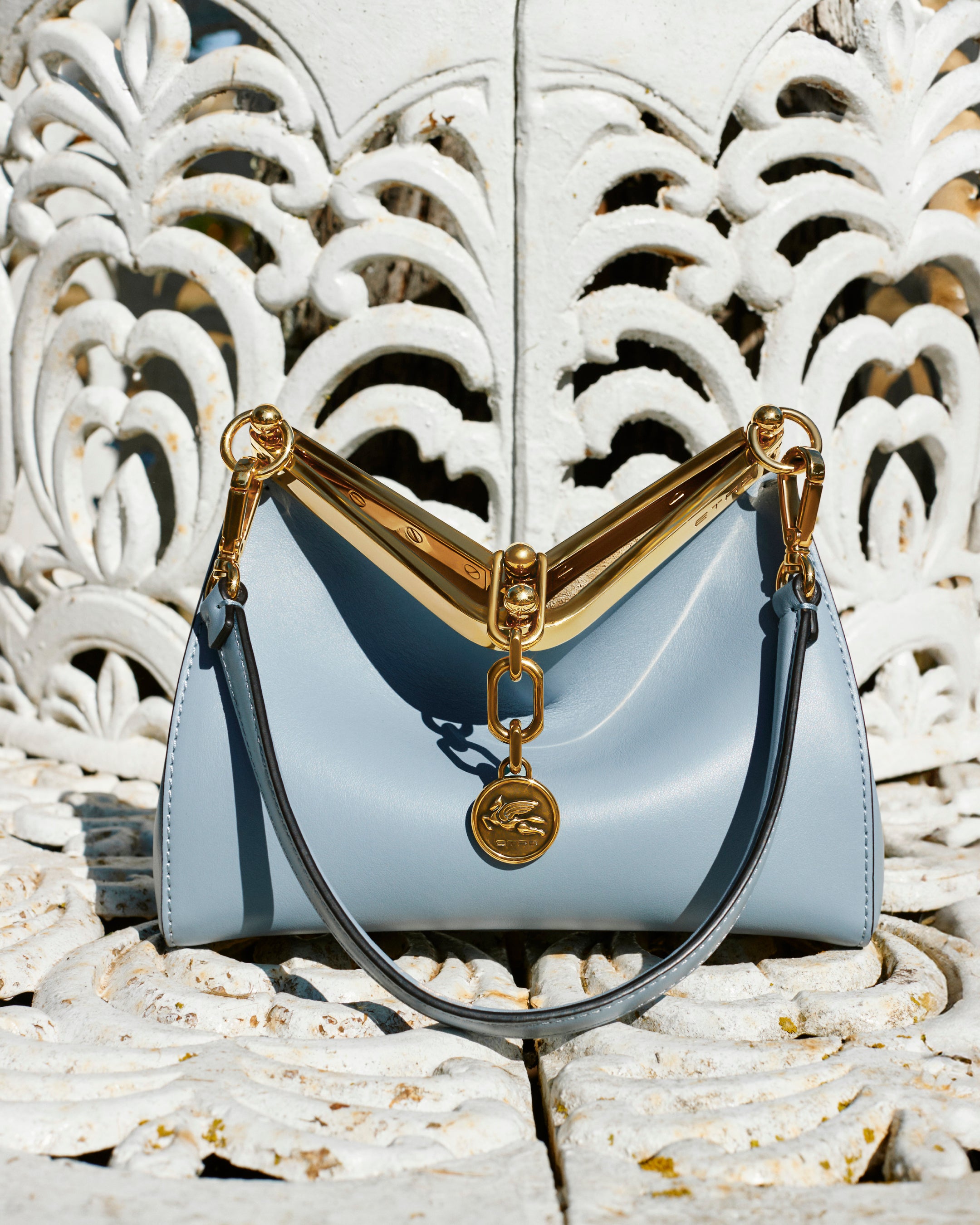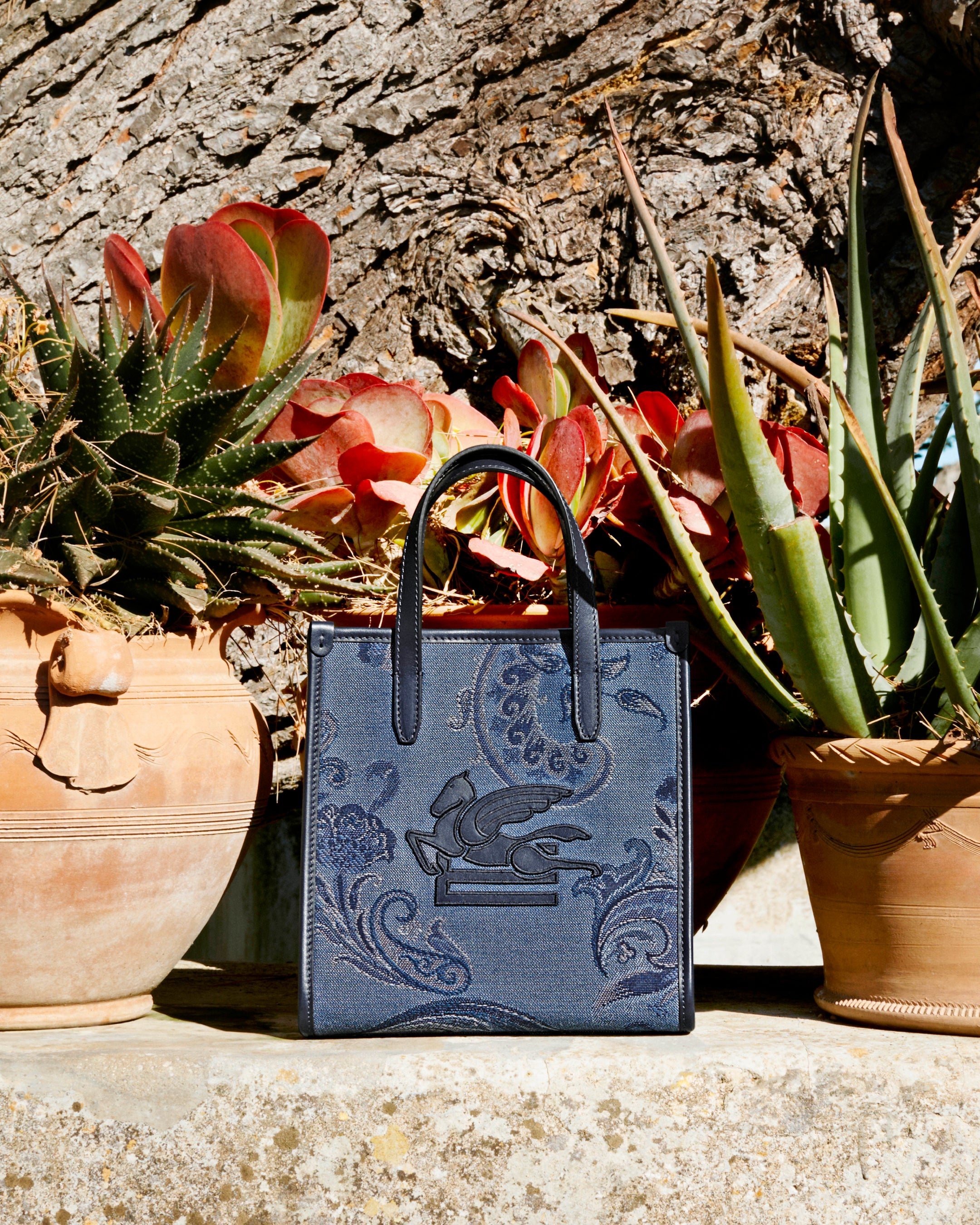 エトロのサマーワードローブを完成させるバッグコレクションとして、航海からインスパイアされたアイコンバッグの「ヴェラ」は、そのシェイプとメタルクロージャーが太陽の光に溢れる季節にぴったり。スタイリングにエレガントなアクセントを加えます。他にも、デニムジャカードの「ラブトロッター」、柔らかなキルティングとエトロのシグネチャープリントを組み合わせた「エトロボンド」、マルチユースな「エトロ エッセンシャル」のトートバッグなどが揃います。