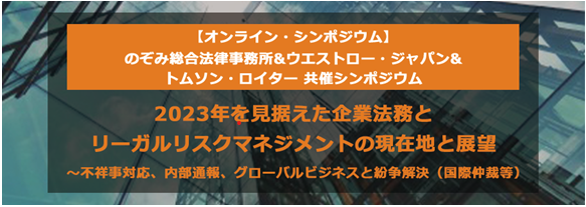 【オンライン・シンポジウム開催】「2023年を見据えた企業法務とリーガルリスクマネジメントの現在地と展望~不祥事対応、内部通報、グローバルビジネスと紛争解決(国際仲裁等)」