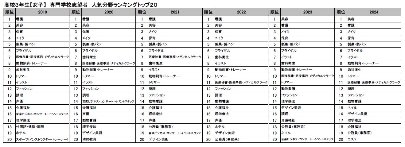 ~高校生が志望する専門学校人気分野ランキングの推移・女子の看護離れ、男子のIT志向が進む~