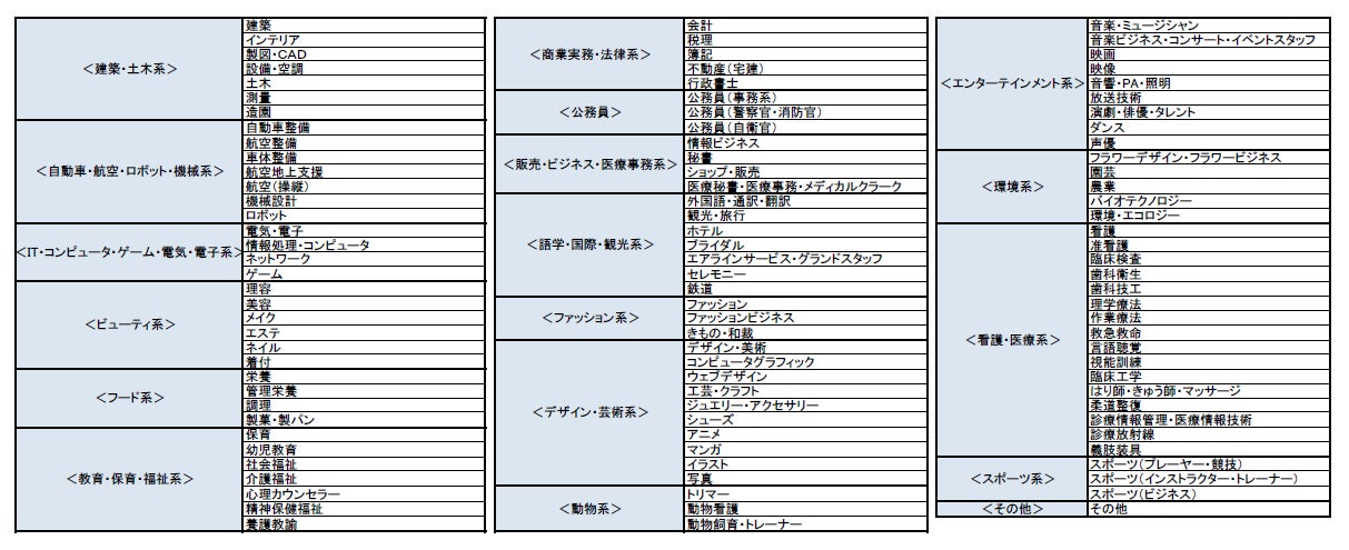 高校生の進路の中でもとくに専門学校はほぼ卒業後の職業、進路を定めて進学する教育機関であることから、専門学校志望者の希望分野の変動を検証することで、それらの変化を明確にできると考えた。