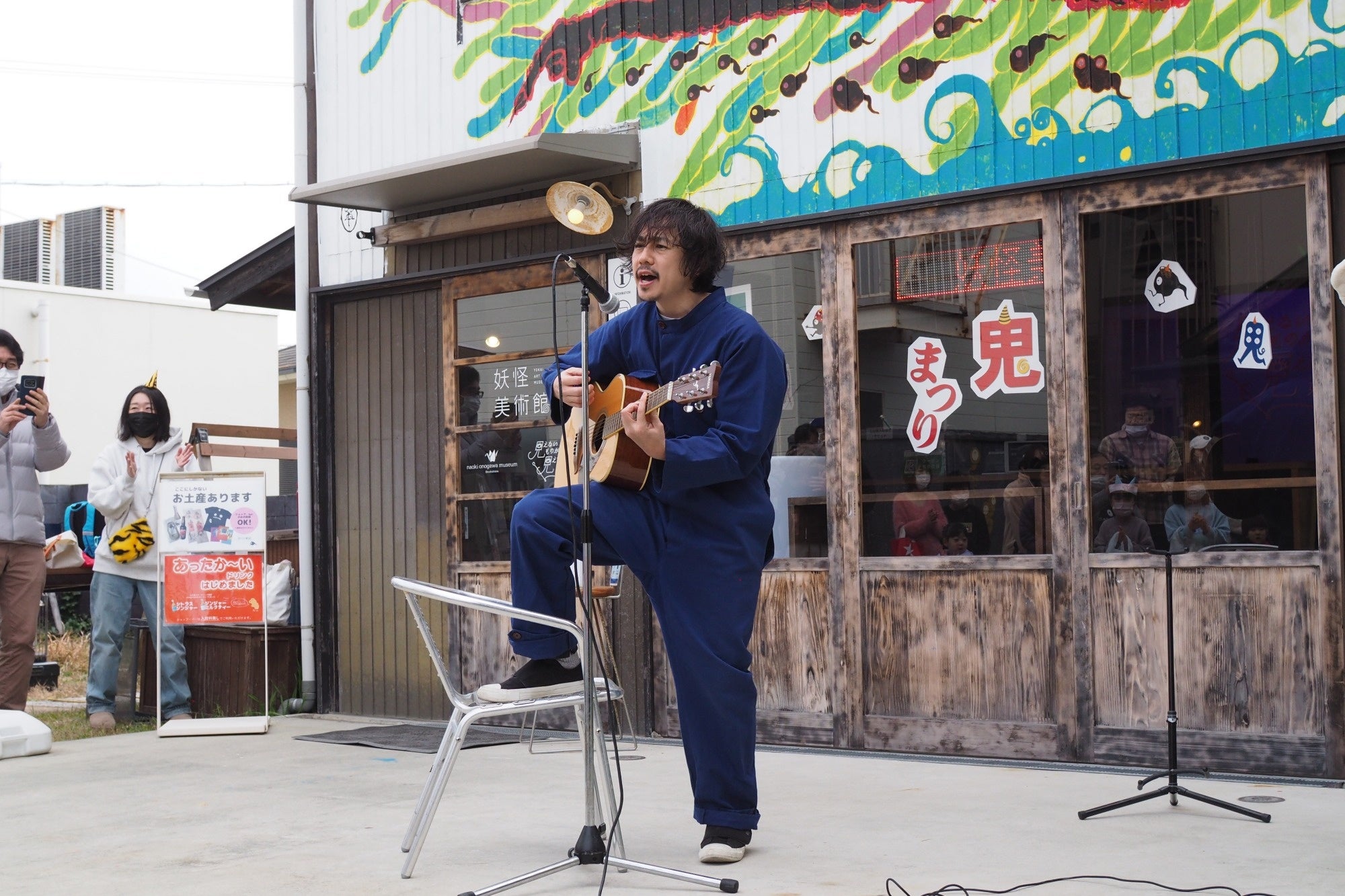妖怪画家による「妖怪風似顔絵」やオリジナル曲の演奏で妖怪が生まれる島をアピール。