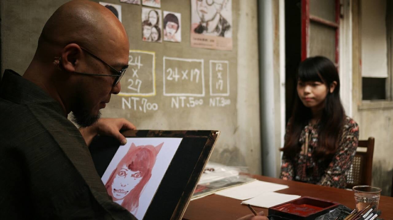 妖怪画家の柳生忠平と対面して、いろいろと話をしながら自分を妖怪風に描き上げてもらうのが妖怪風似顔絵です。その人の好きなモノ、クセや性格などを会話の中で聞き取りそれをもとにして「そっくりだけど怖い」妖怪を20分程度で描きあげます。TV番組の取材時には、芸人フジワラの原西さんやモデルの土屋アンナさんや俳優の八嶋智人さんも体験したことがある人気のパーソナルライブペイントです。