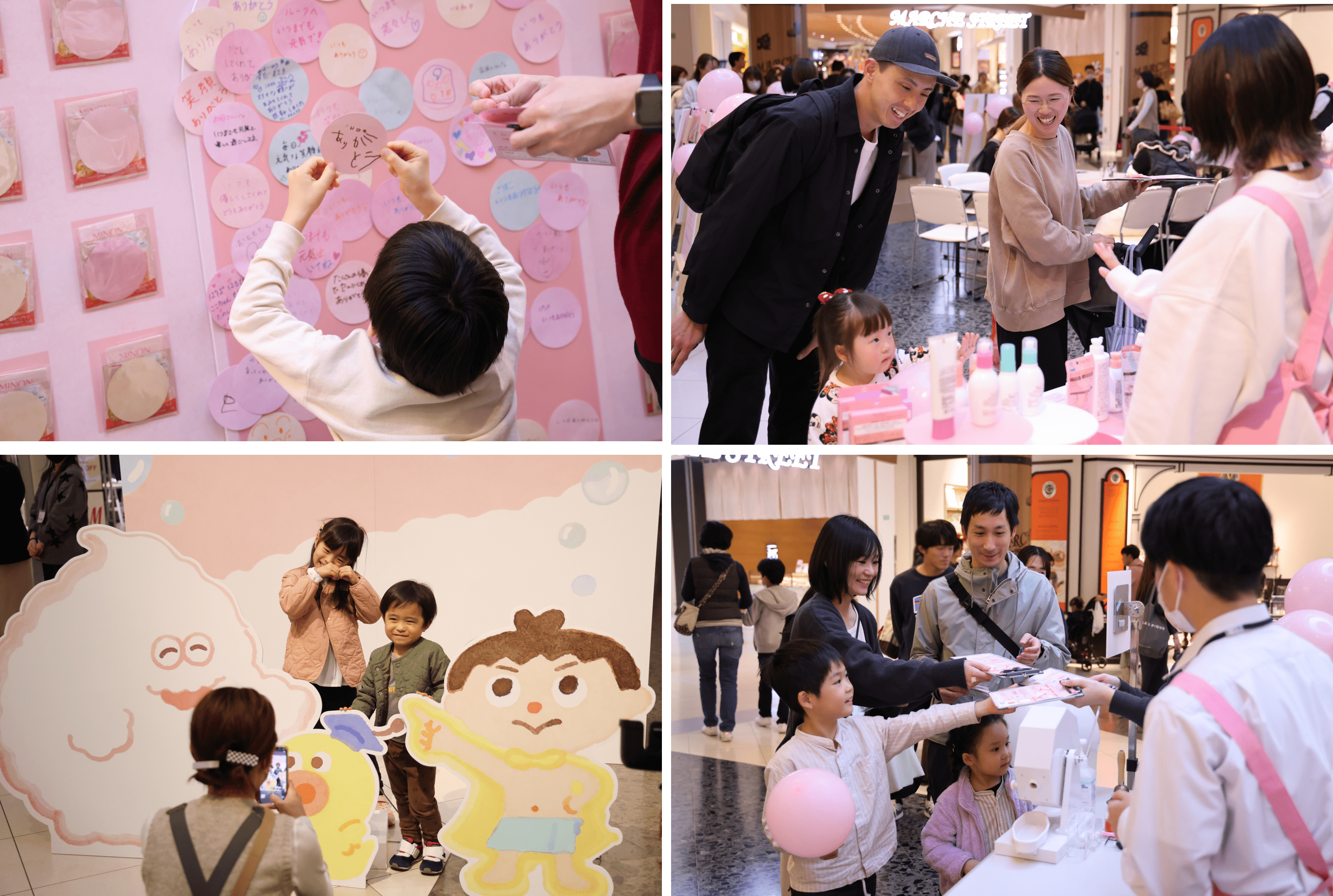 会場にはお子さまやそのご家族にスキンケアの大切さを楽しく学んでいただくためのオリジナル絵本『あわあわ もこもこ にこにこ のん』の世界観を表現したフォトスポットも設置。多くのお子さまが絵本に登場する“もこのん”や“ゆうちゃん”との記念撮影をされていました。