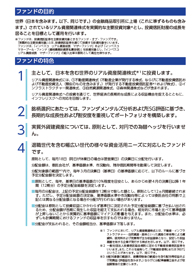 当資料はインベスコ・アセット・マネジメント株式会社が設定・運用する投資信託についてお伝えすることのみを目的として作成したプレスリリースであり、金融商品取引法に基づく開示書類ではありません。当資料は信頼できる情報に基づいて作成されたものですが、その情報の確実性あるいは完結性を表明するものではありません。また、過去の運⽤実績は、将来の運⽤成果を保証するものではありません。当資料で詳述した分析は、⼀定の仮定に基づくものであり、その結果の確実性を表明するものではありません。分析の際の仮定は変更されることもあり、それに伴い当初の分析の結果と差異が⽣じる場合があります。当資料の中で記載されている内容、数値、図表、意⾒などは特に記載がない限り当資料作成時点のものであり、今後予告なく変更されることがあります。ファンドの購⼊のお申し込みの場合には、投資信託説明書(交付⽬論⾒書)を販売会社よりあらかじめまたは同時にお渡ししますので、必ず内容をご確認の上、ご⾃⾝でご判断ください。投資信託は預⾦や保険契約と異なり、預⾦保険機構または保険契約者保護機構の保護の対象ではありません。また、登録⾦融機関は投資者保護基⾦には加⼊しておりません。ファンドのお取引に関しては、⾦融商品取引法第37条の6の規定(いわゆるクーリングオフ)の適⽤はありません。ファンドは、実質的に国内外の値動きのある有価証券など(外貨建資産には、為替変動リスクもあります。)に投資しますので、基準価額は変動します。したがって、元本が保証されているものではありません。これらの運⽤による損益はすべて受益者の皆様に帰属します。