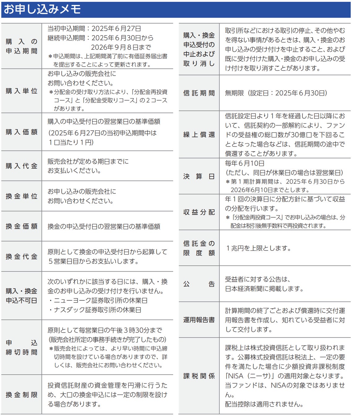 ■ファンドのお申し込みメモ