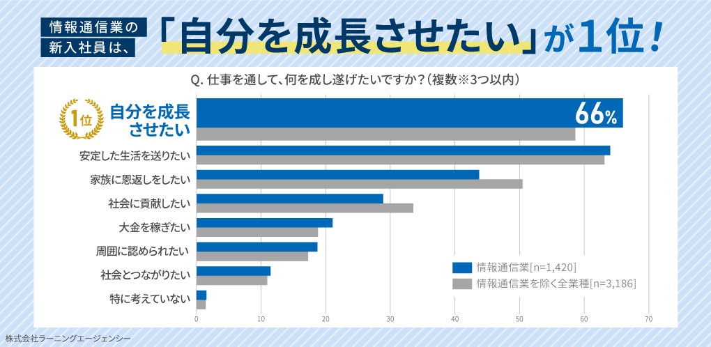 情報通信業の新入社員は『成長意欲』『専門家志向』『転職意向』が他業種よりも高い結果に