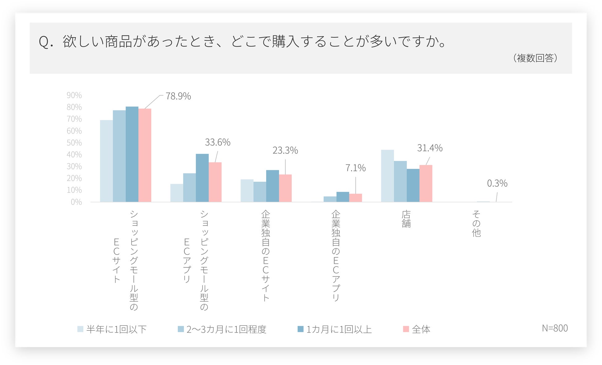 ◆78.9%がモール型ECサイトで購入、企業独自ECサイトでの購入が急増