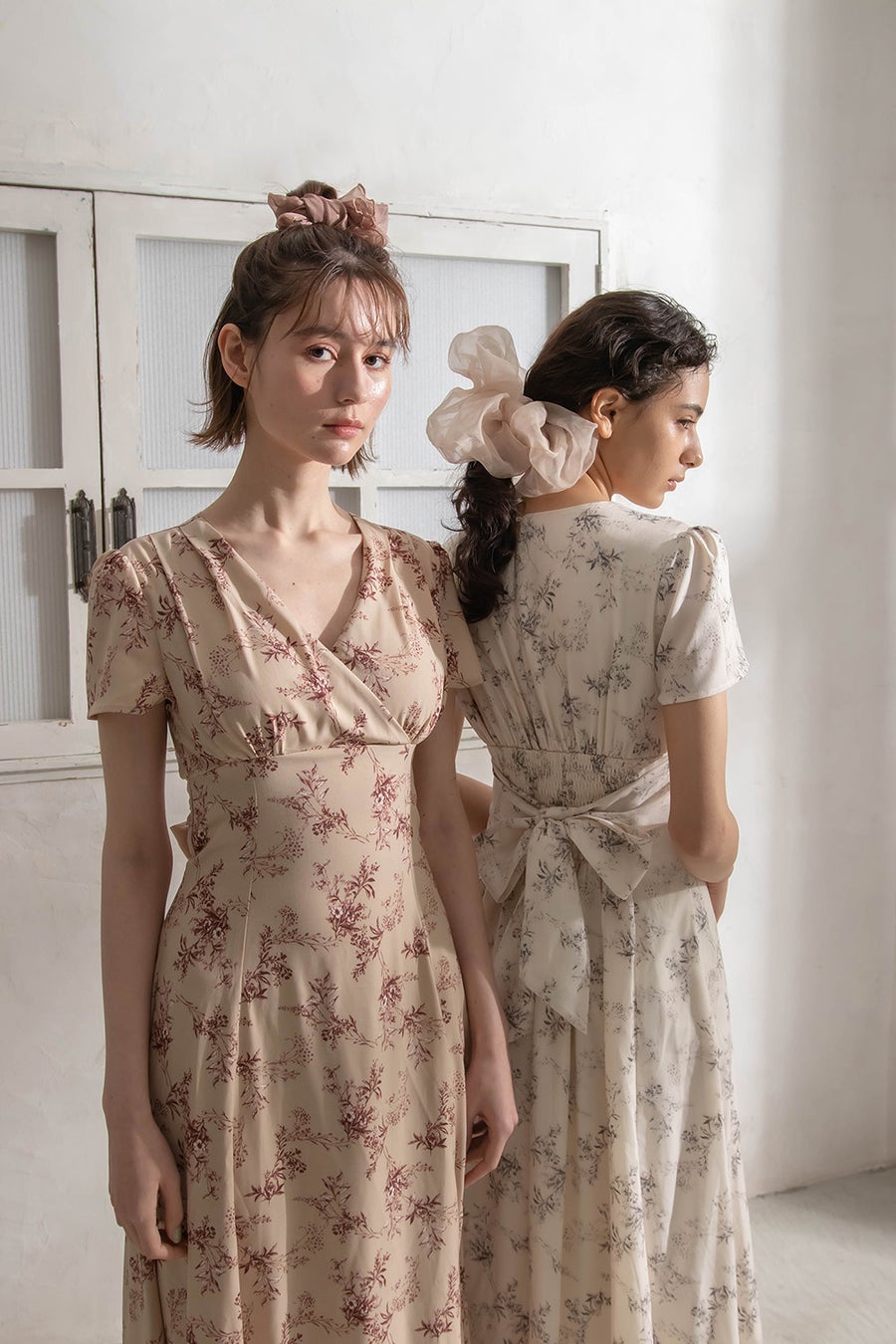 肌にふんわりと馴染む柔らかなシフォン素材を使った、フレアスリーブのカップインワンピース。