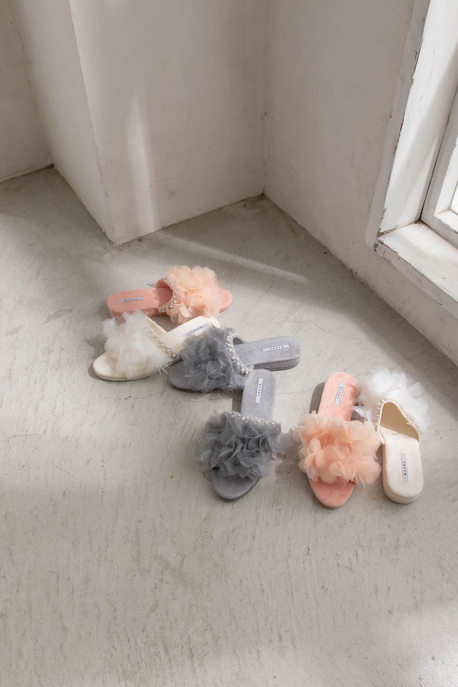 立体感のある花びらとビジューでRANDAらしいルームシューズ。