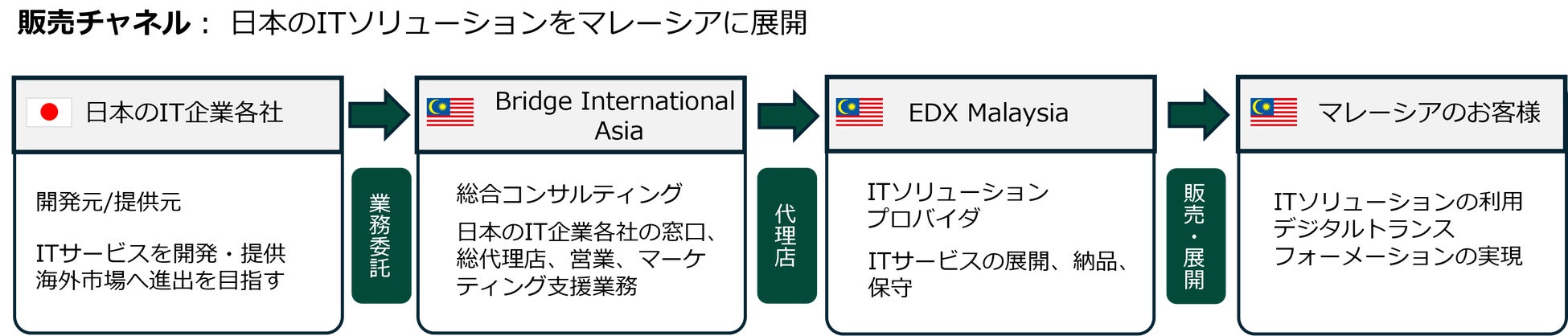 ブリッジインターナショナル株式会社(本社:東京都世田谷区、代表取締役社長:吉田融正、以下「ブリッジ」)の子会社であり、マレーシアの首都クアラルンプール近郊に拠点を構える総合マーケティング企業、BRIDGE International Asia Sdn Bhd(以下「ブリッジインターナショナルアジア」)は、ITサービスプロバイダであるEDX Malaysia Sdn Bhd(以下、EDX Malaysia)と業務提携し、日本の各ITサービスをマレーシアで展開するための販売チャネルを構築いたしましたことをお知らせいたします。